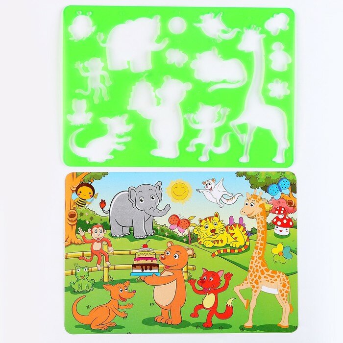 Купить Трафарет для малышей «Весёлые животные» с раскраской