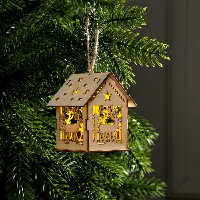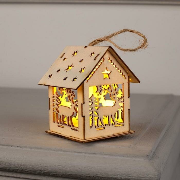 Купить Ёлочная игрушка «Домик с оленем», от батареек, свечение тёплое белое