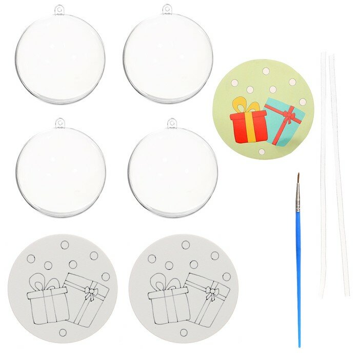 Ёлочное украшение под раскраску «Подарки» размер: 8 см; 2 шт., кисть интересное: