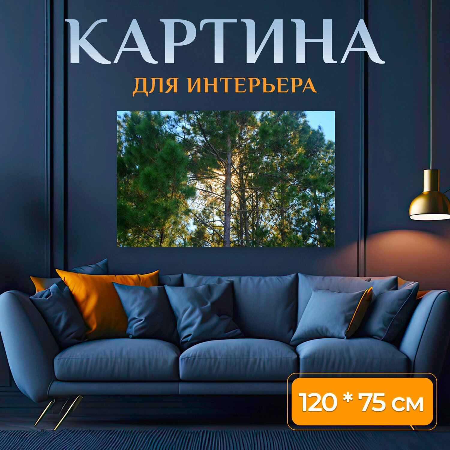 Купить Картина на холсте "Деревья, солнце, тени" на подрамнике 120х75 см. для интерьера