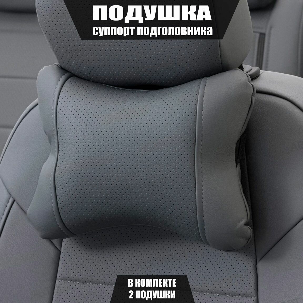 Подушки под шею (суппорт подголовника) для Сузуки Свифт (2000 - 2004) хэтчбек 3 двери / Suzuki Swift, Экокожа, 2 подушки, Темно-серый