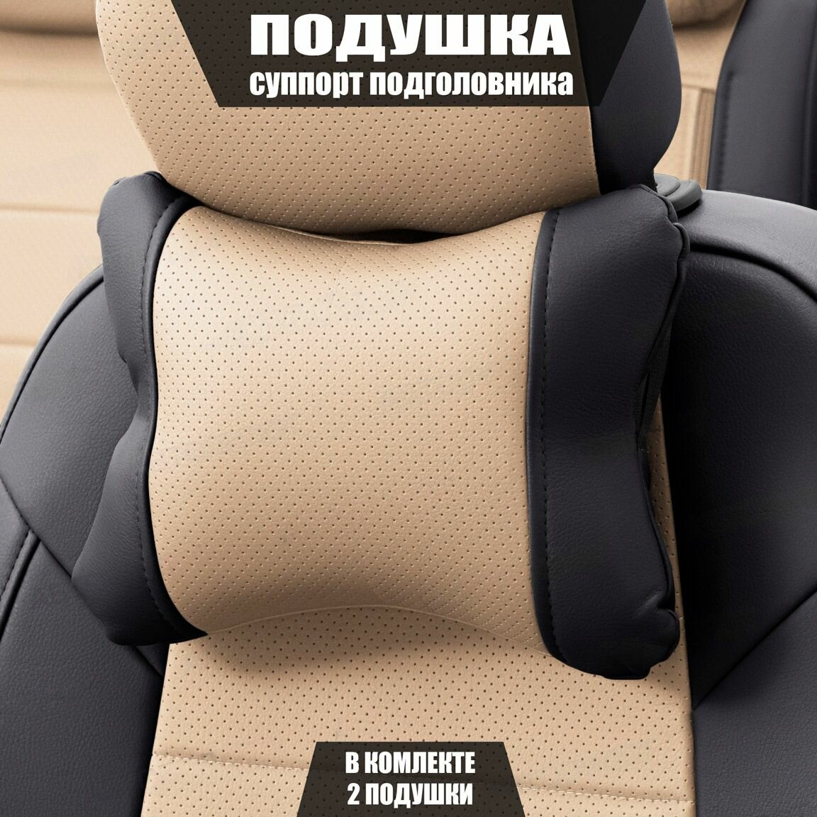 Подушки под шею (суппорт подголовника) для Шкода Суперб (2019 - 2024) универсал 5 дверей / Skoda Superb, Экокожа, 2 подушки, Черный и темно-бежевый