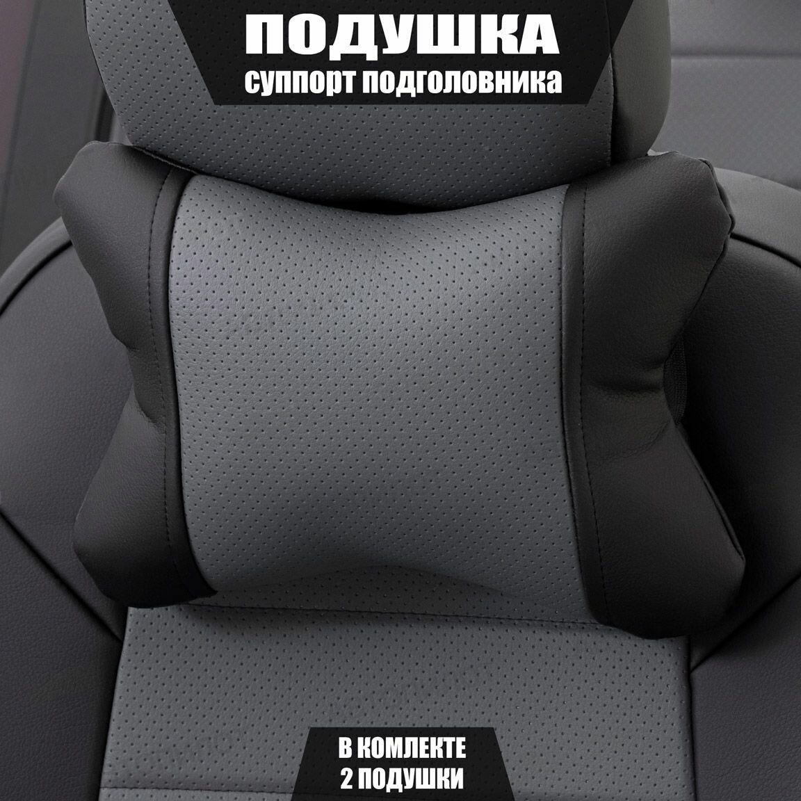 Подушки под шею (суппорт подголовника) для Тойота Ярис (2020 - 2024) хэтчбек 5 дверей / Toyota Yaris, Экокожа, 2 подушки, Серый и черный