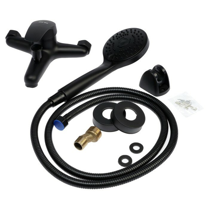 Купить Смеситель для ванны ZEIN Z3838, однорычажный, душевой набор, лейка 5 режимов, черный