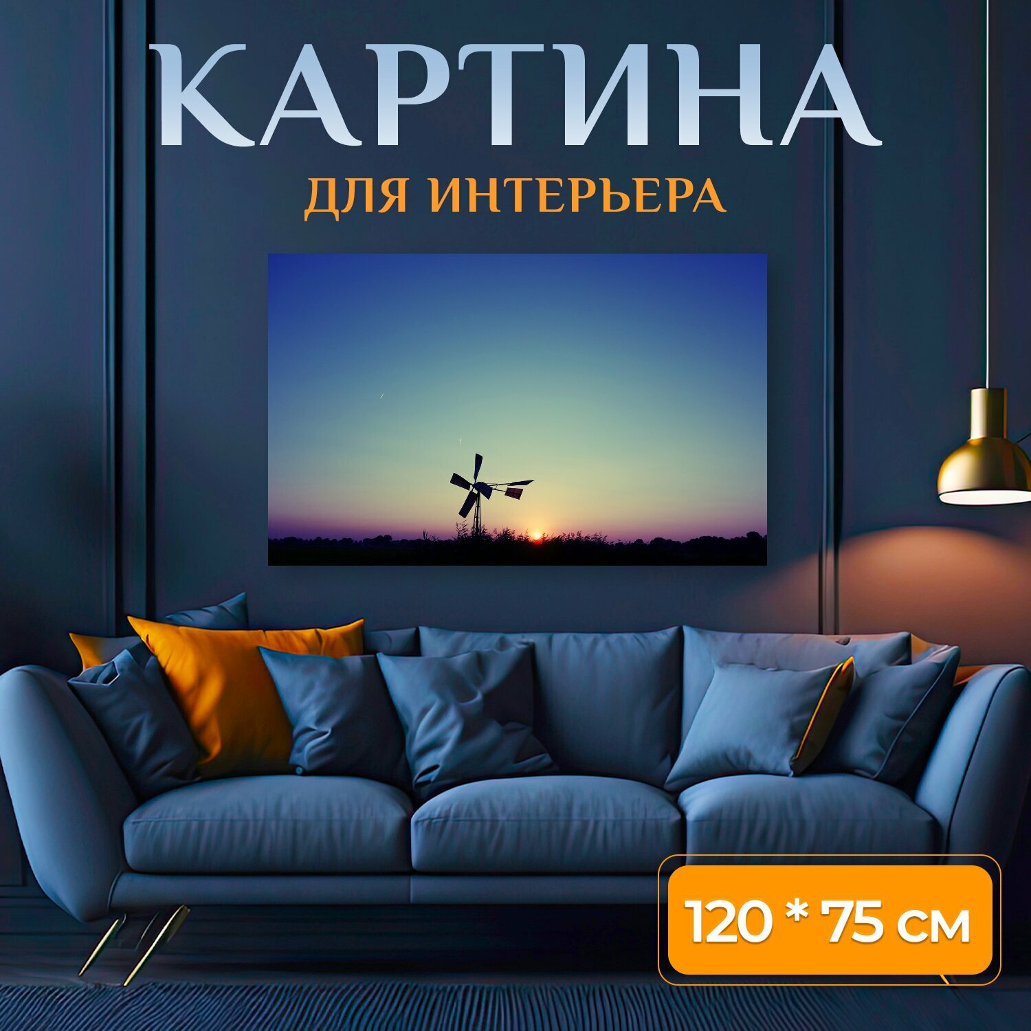 Картина на холсте "Мельница, водяной насос, ветряной водяной насос" на подрамнике 120х75 см. для интерьера интересное: