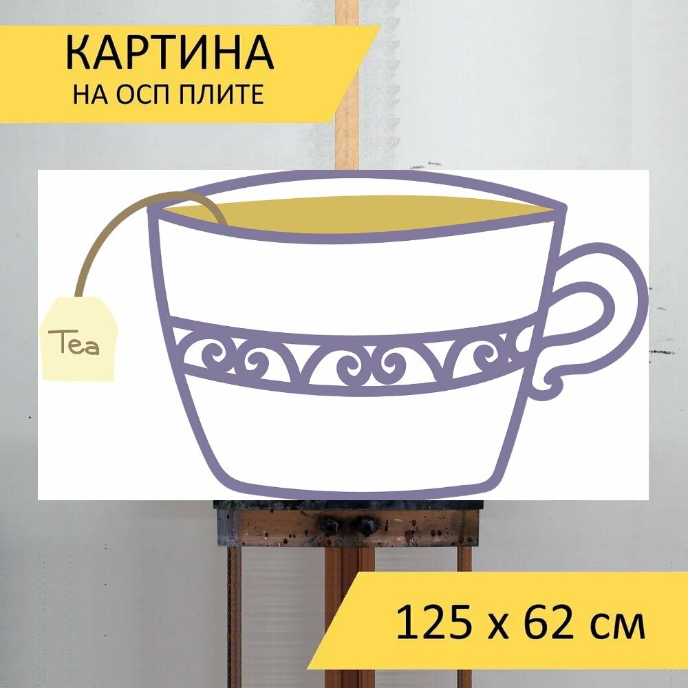 Картина на ОСП "Чай, чашка, напиток" 125x62 см. для интерьера на стену интересное: