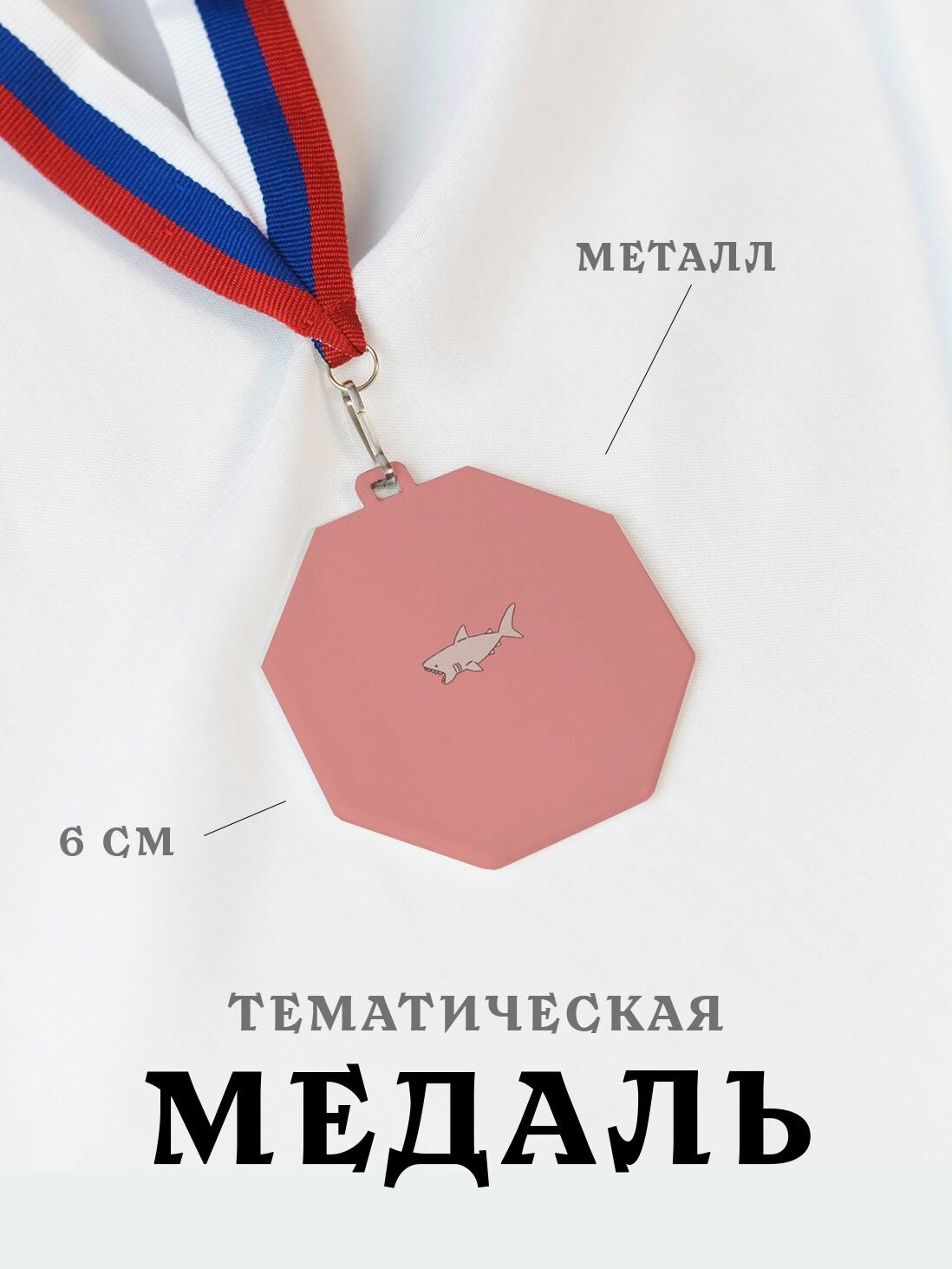 Медаль сувенирная спортивная подарочная Акула, металлическая на ленте триколор интересное:
