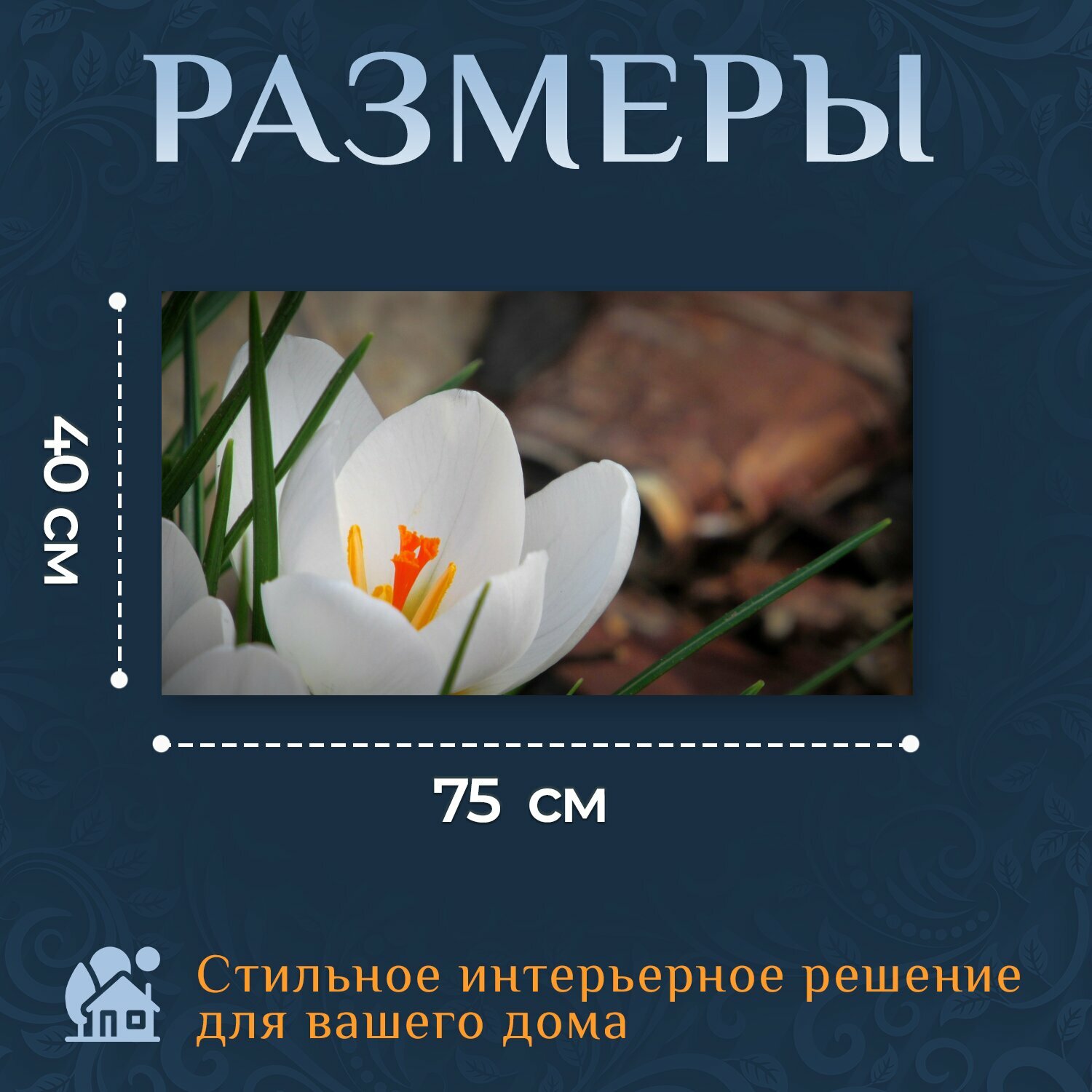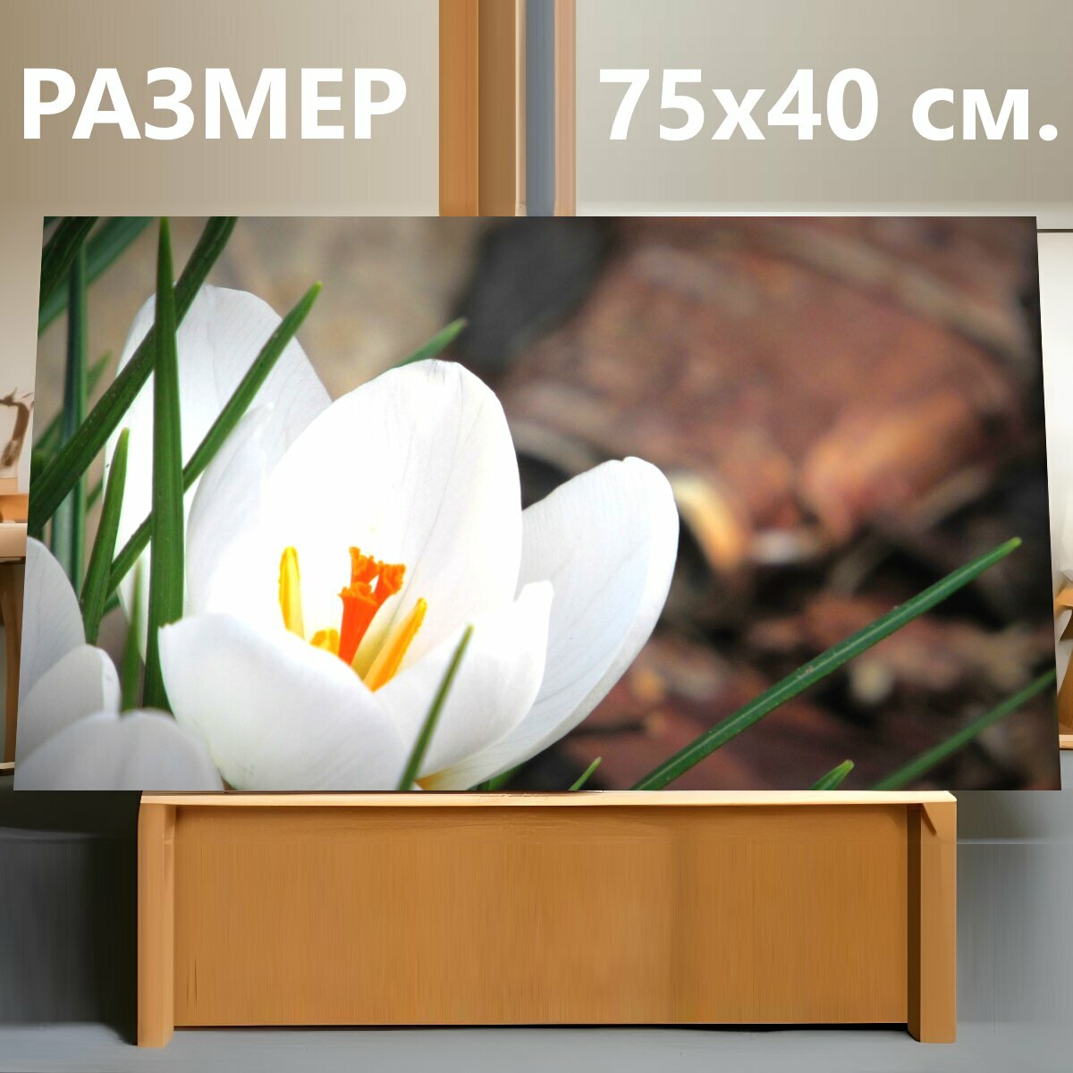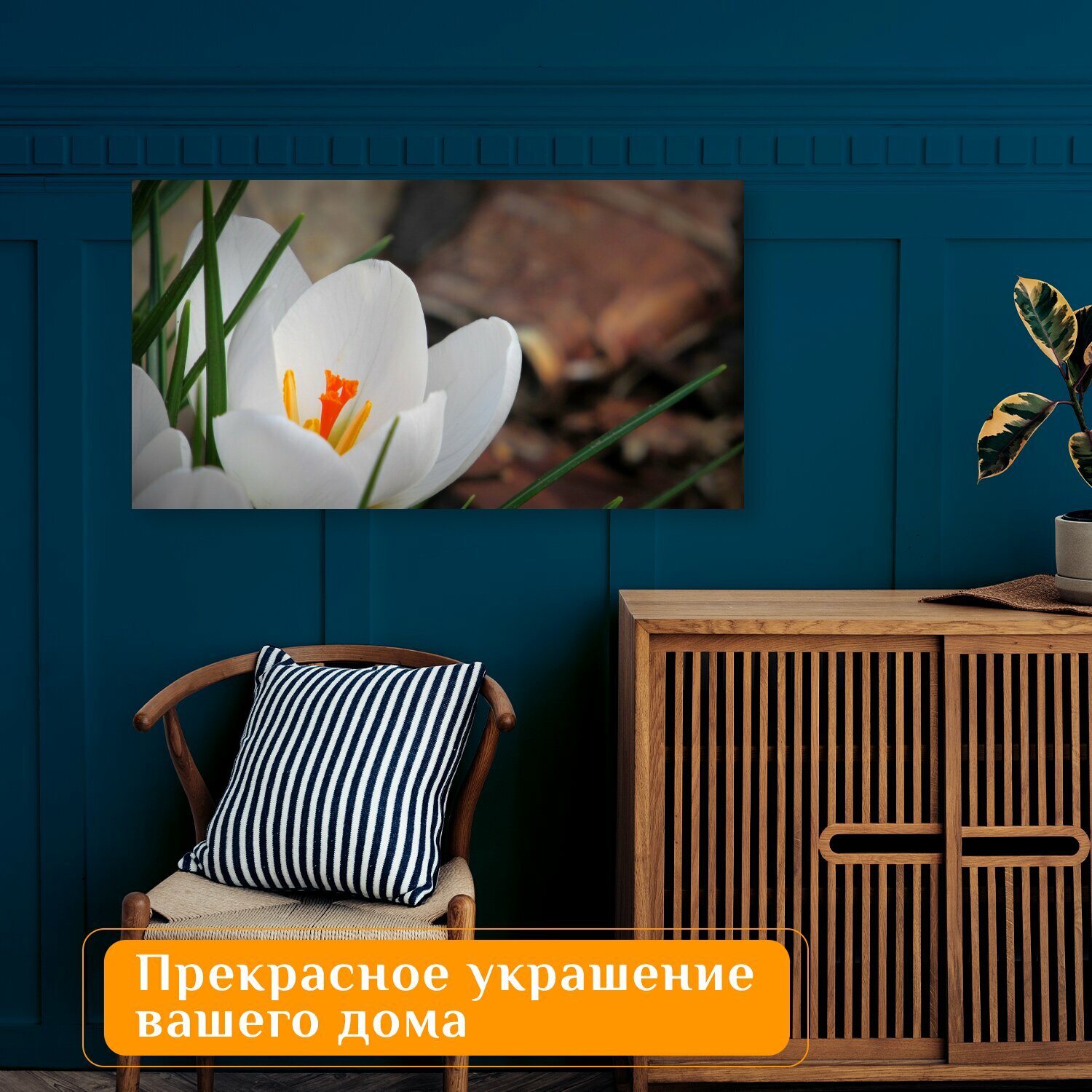 Картина на холсте "Крокус, цветок, макрос" на подрамнике 75х40 см. для интерьера интересное:
