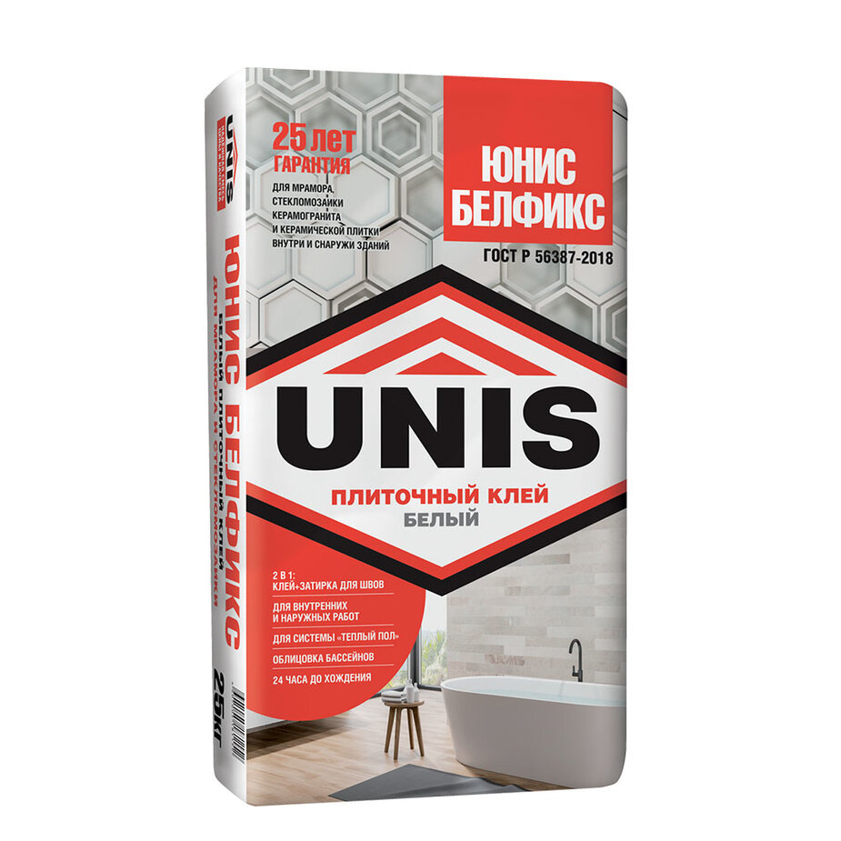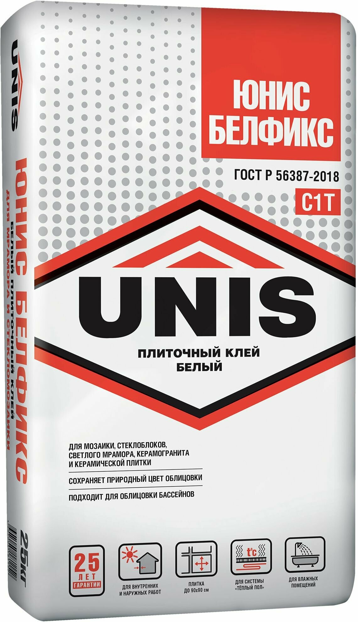 Плиточный клей UNIS белфикс белый, класс C1T, 25 кг 4607005181152