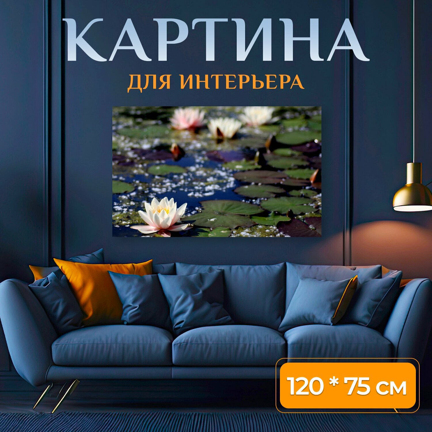 Картина на холсте "Водяная лилия, пруд с лилиями, пруд" на подрамнике 120х75 см. для интерьера интересное:
