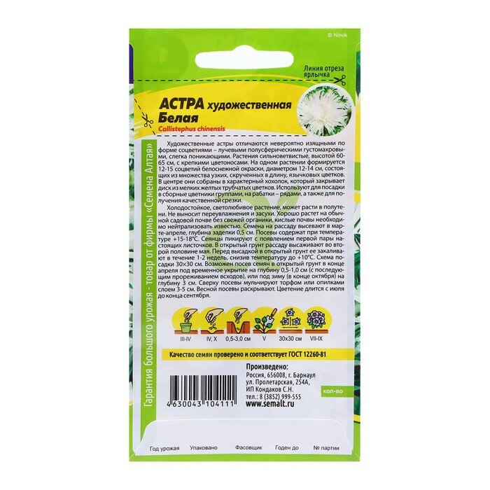 Купить Семена Алтая Семена Астра "Художественная", белая, 0,3 гр.