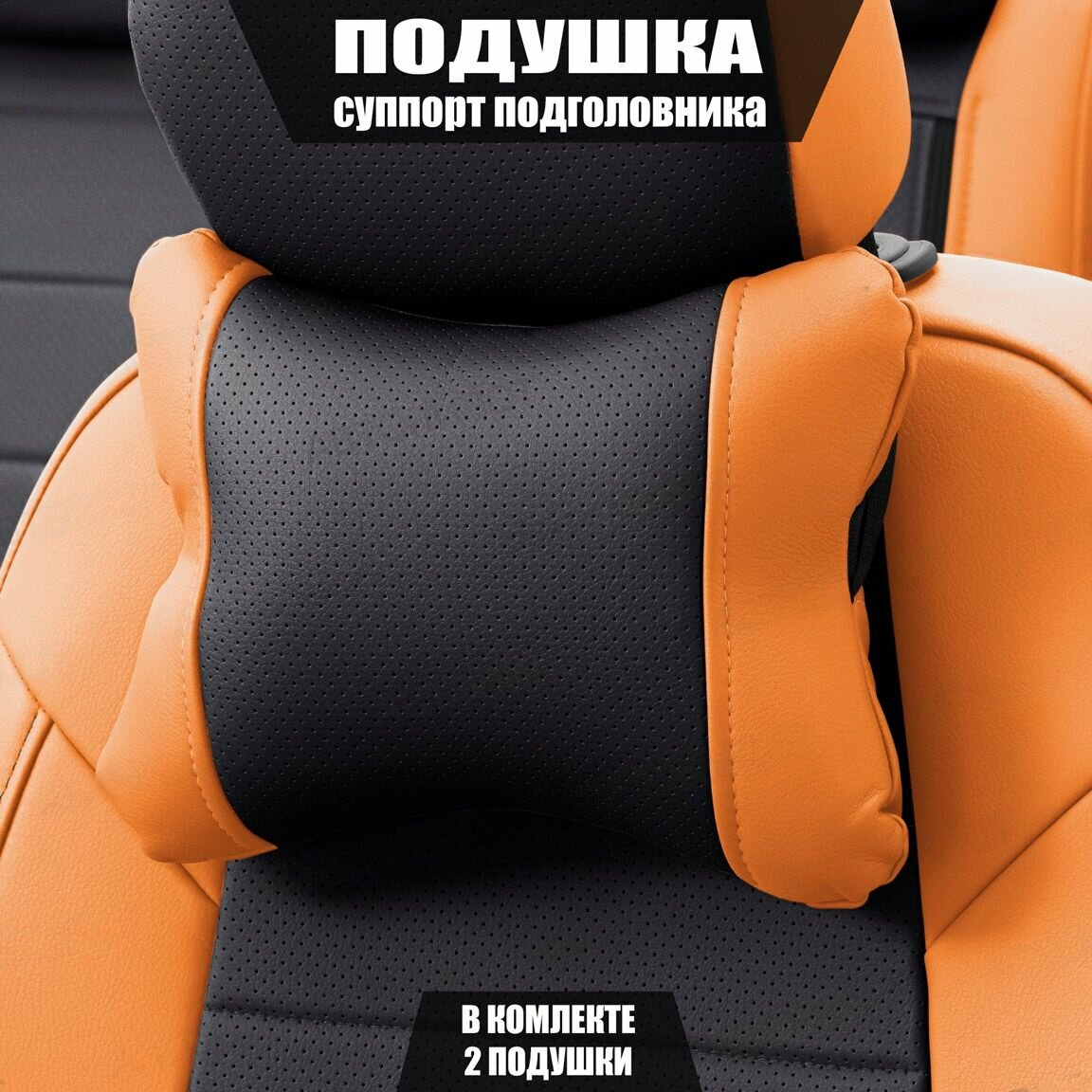 Подушки под шею (суппорт подголовника) для Мазда 3 (2013 - 2017) седан / Mazda 3, Экокожа, 2 подушки, Черный и оранжевый