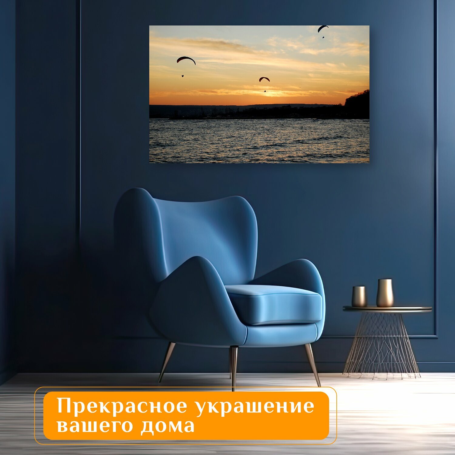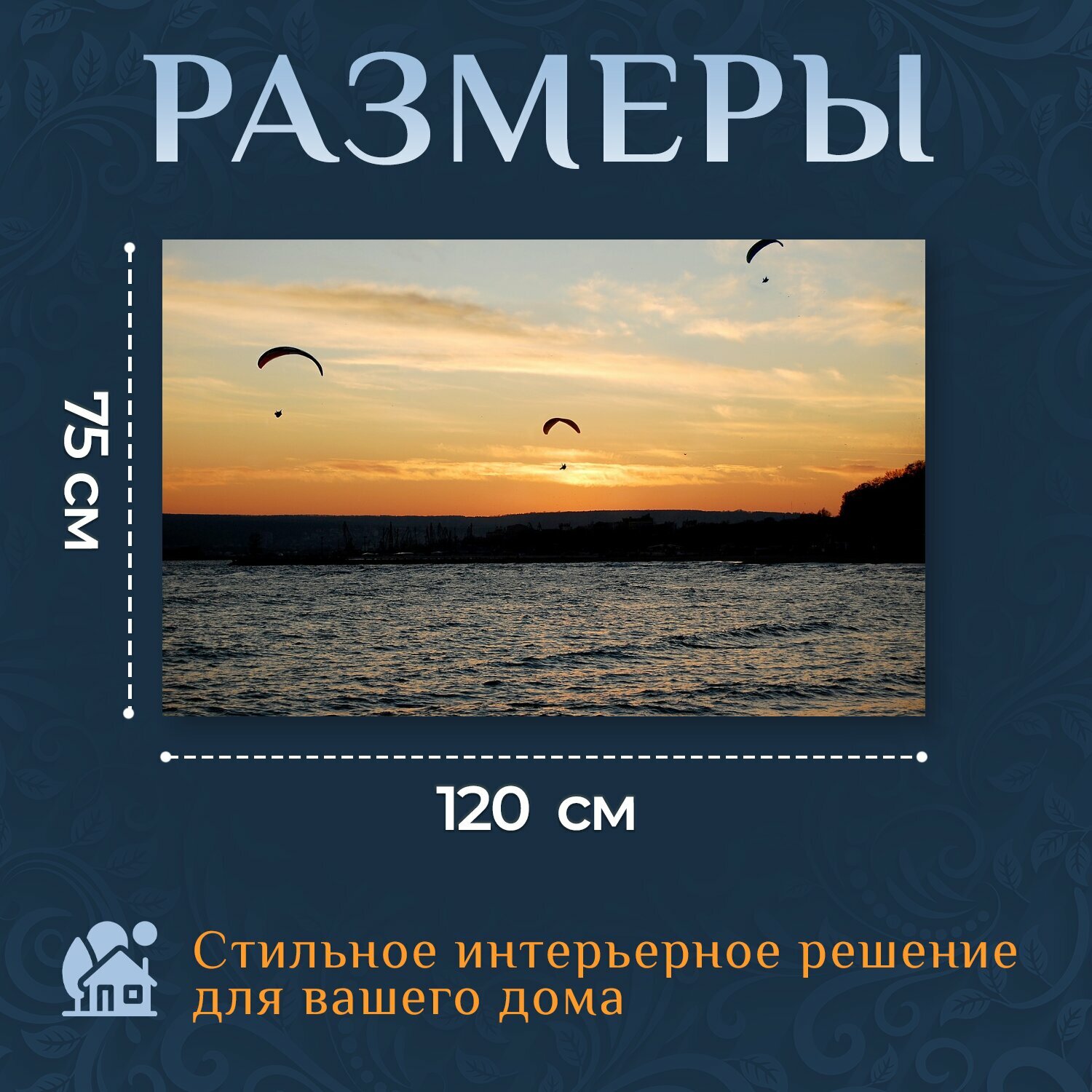 Картина на холсте "Параплан, парапланы, заход солнца" на подрамнике 120х75 см. для интерьера интересное: