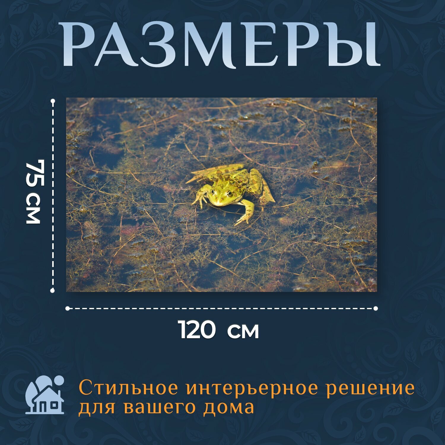 Картина на холсте "Лягушка, пруд, садовый пруд" на подрамнике 120х75 см. для интерьера интересное: