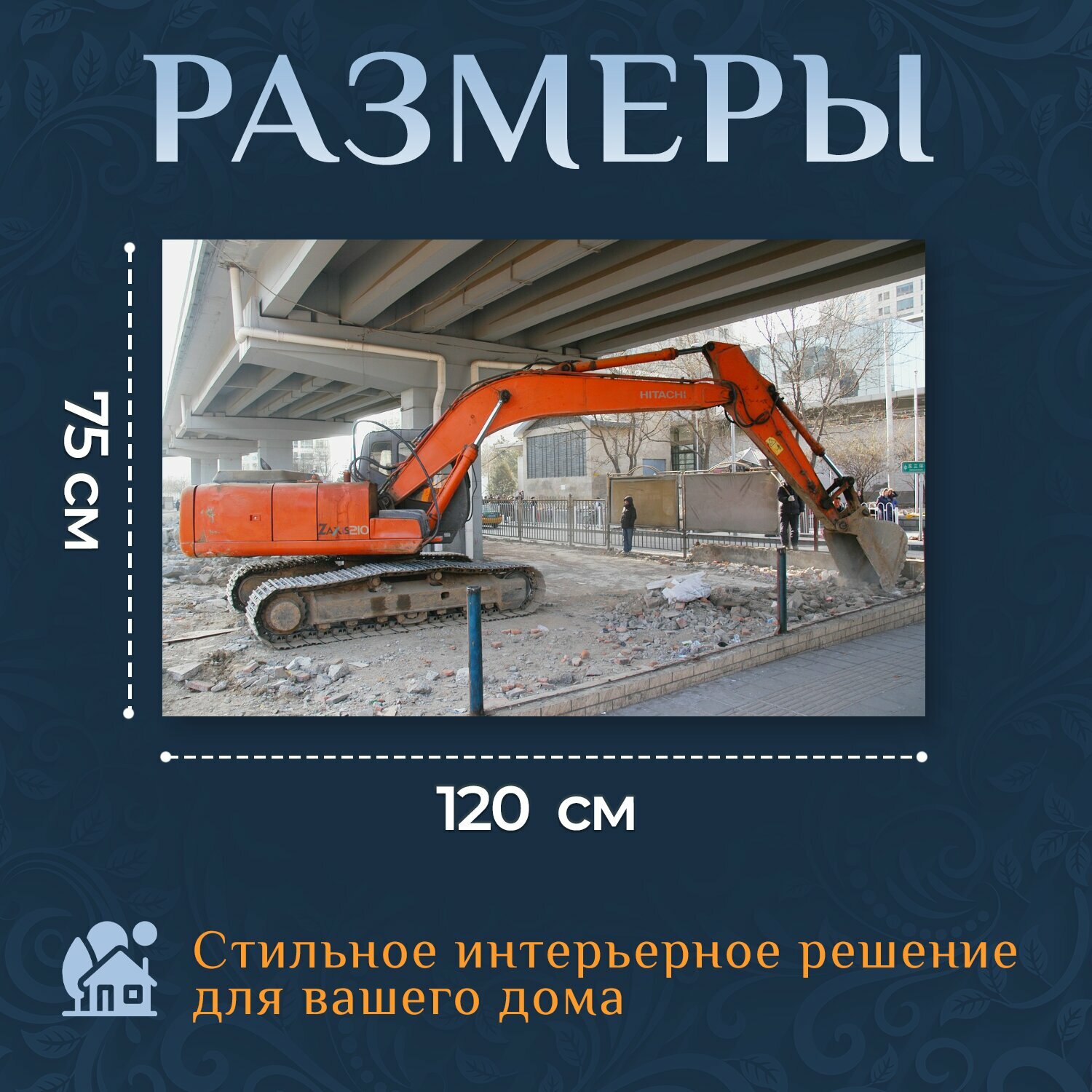 Картина на холсте "Бульдозер, оборудование, экскаватор" на подрамнике 120х75 см. для интерьера интересное: