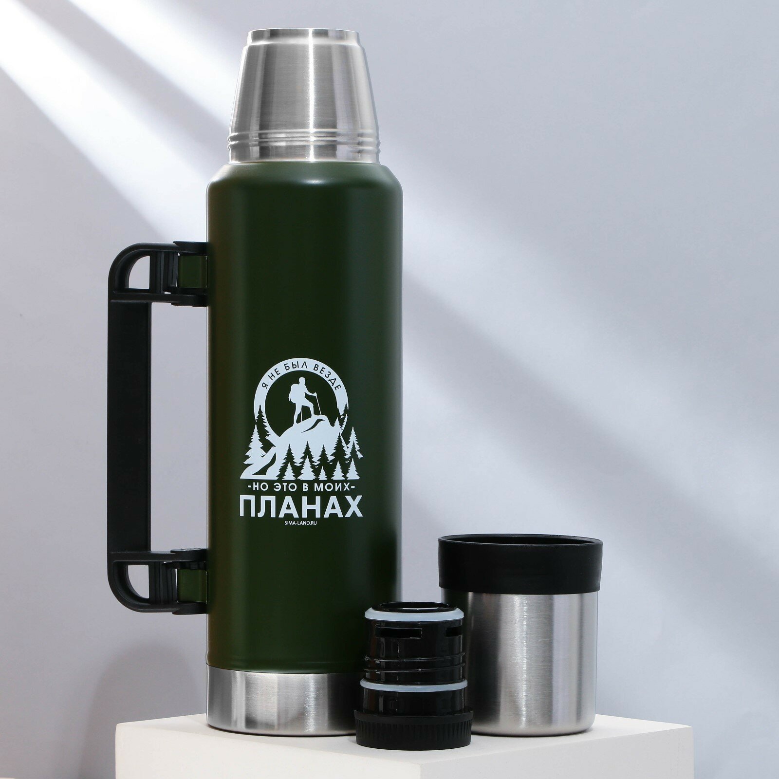 Термос «Покорять», 1.2 л, зеленый, сохраняет тепло 16-18 ч (1шт.) интересное: