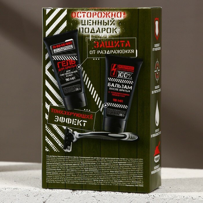 Подарочный набор косметики «Самому храброму», гель для бритья 110 мл, бальзам после бритья 110 мл, бритва, HARD LINE интересное: