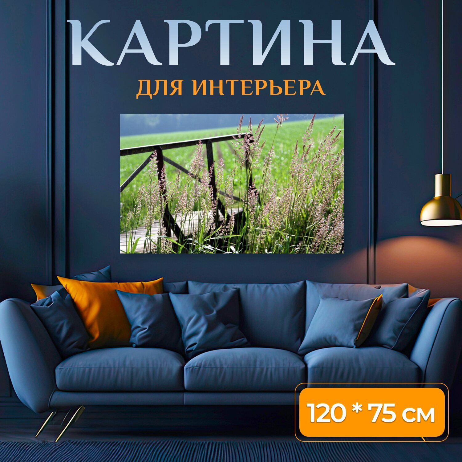 Купить Картина на холсте "Мост, напиток, поле" на подрамнике 120х75 см. для интерьера