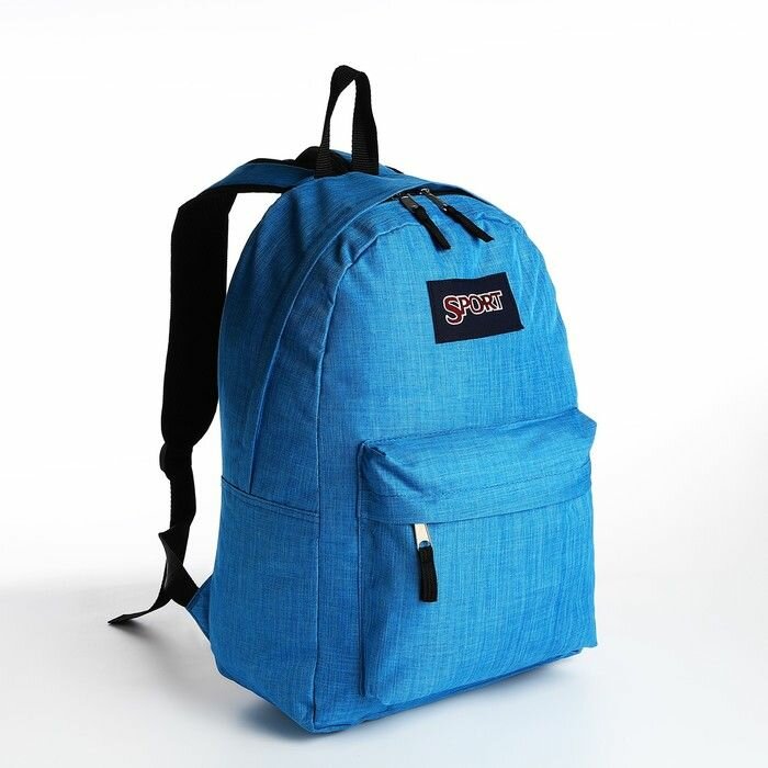 Купить Рюкзак школьный из текстиля на молнии, наружный карман, цвет голубой
