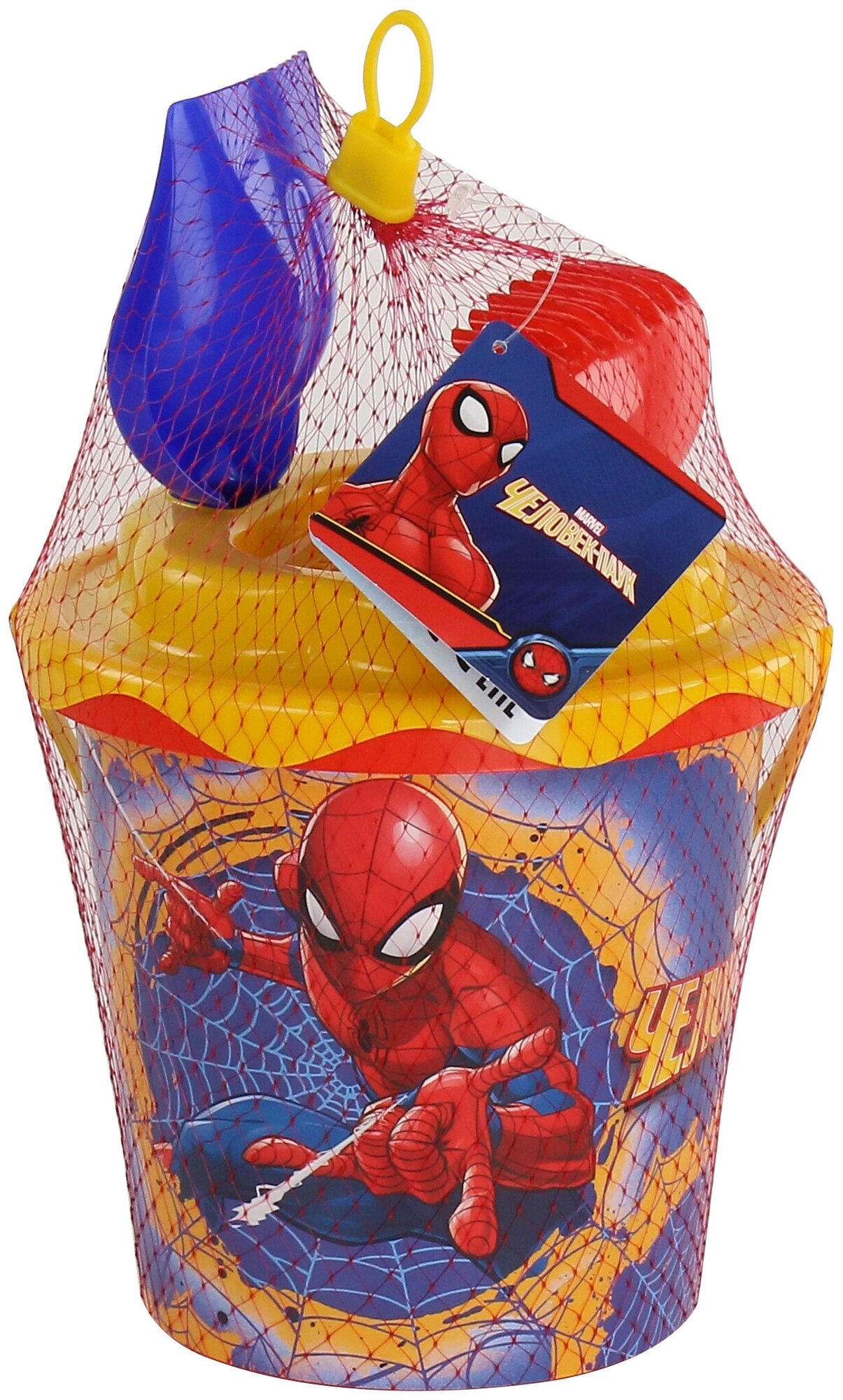 Набор Marvel «Человек-Паук» №11: ведро с наклейкой, ситечко "Солнышко", лопатка №5, грабельки №5