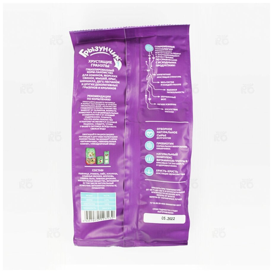 Грызунчик Хрустящие гранулы корм-лакомство для грызунов и кроликов Ассорти, 150 г.