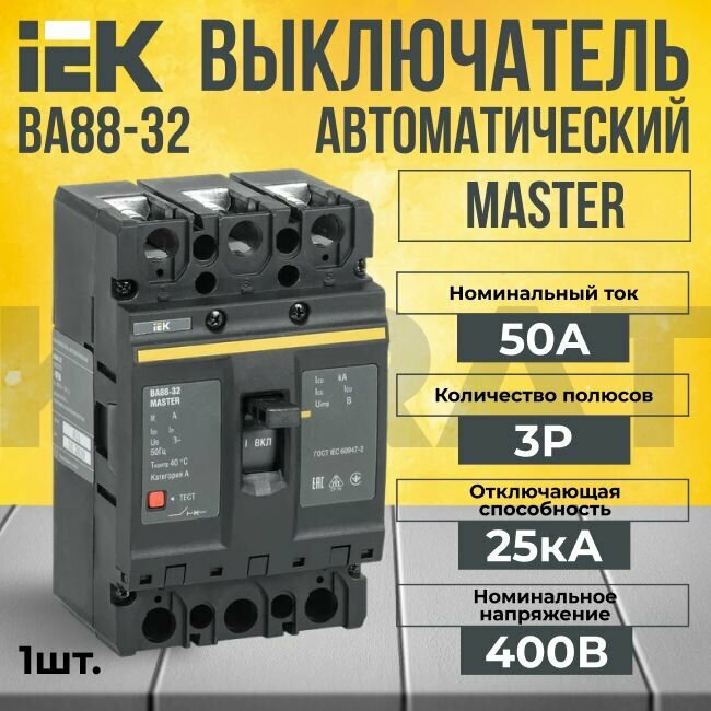 Автоматический выключатель 3P 50А 25кА ВА 88-32 MASTER KARAT IEK - 1 шт. интересное: