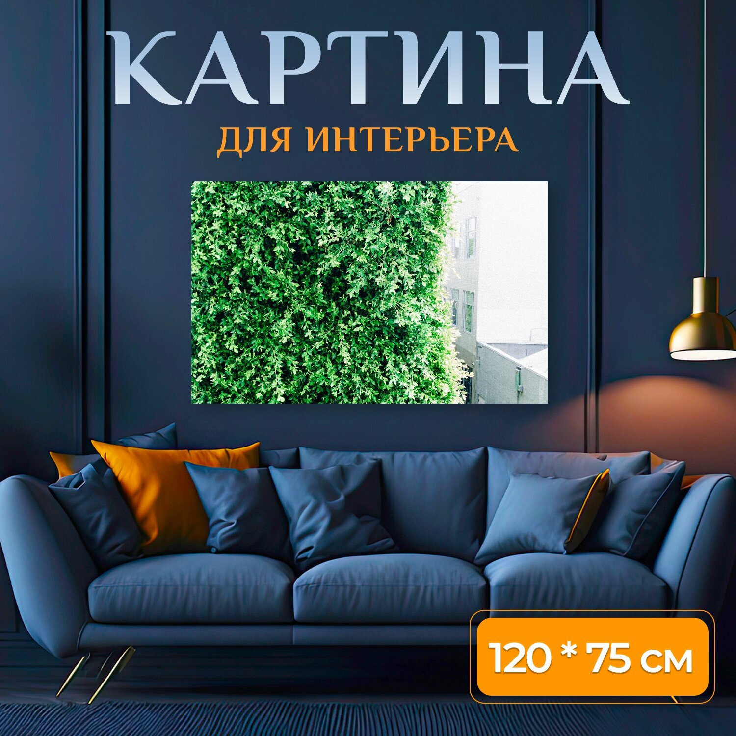 Картина на холсте "Зеленый, листья, кустарник" на подрамнике 120х75 см. для интерьера интересное: