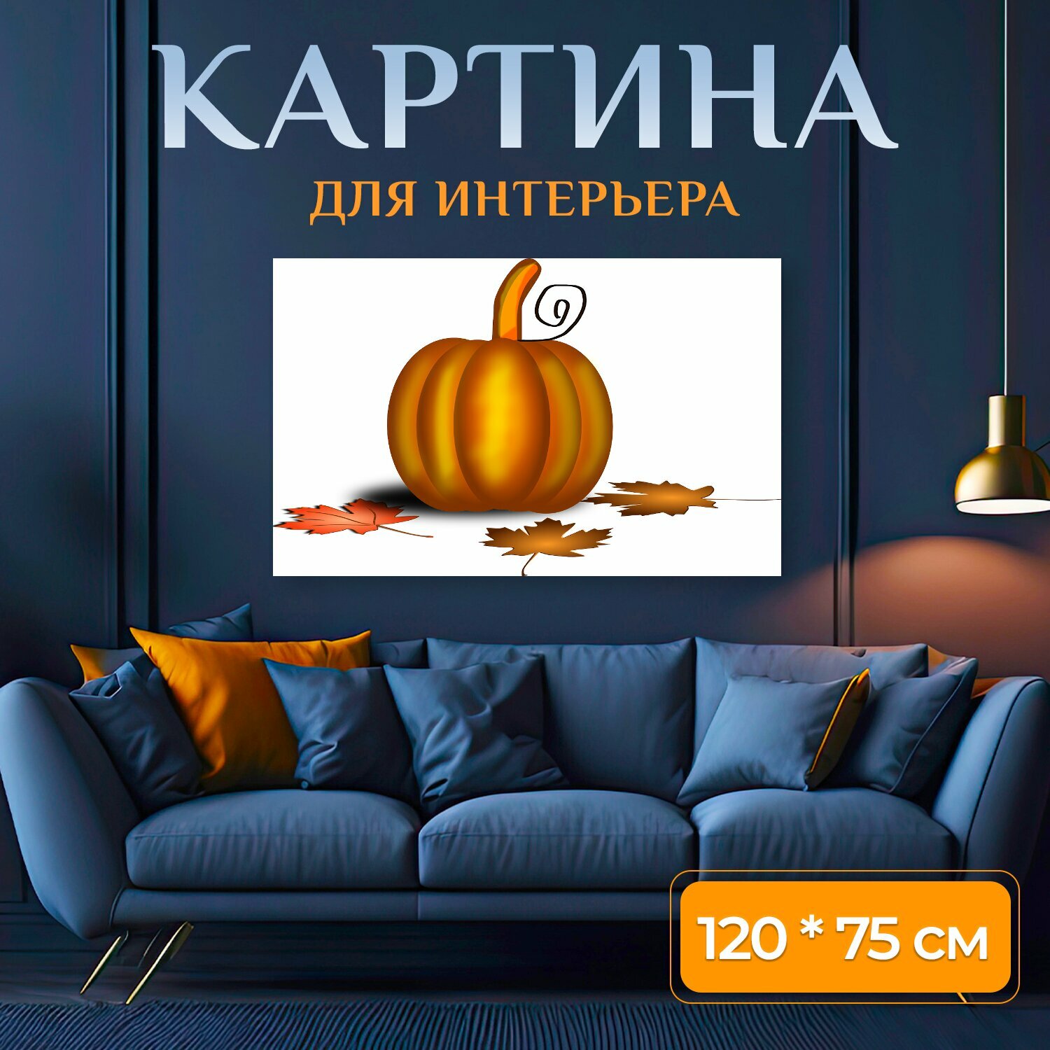 Купить Картина на холсте "Тыква, благодарение, листва" на подрамнике 120х75 см. для интерьера