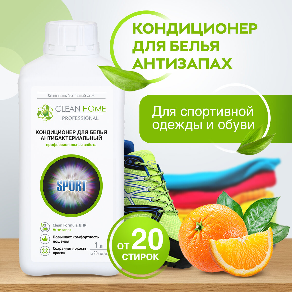 Купить Кондиционер для стирки спортивной одежды CLEAN HOME Антизапах