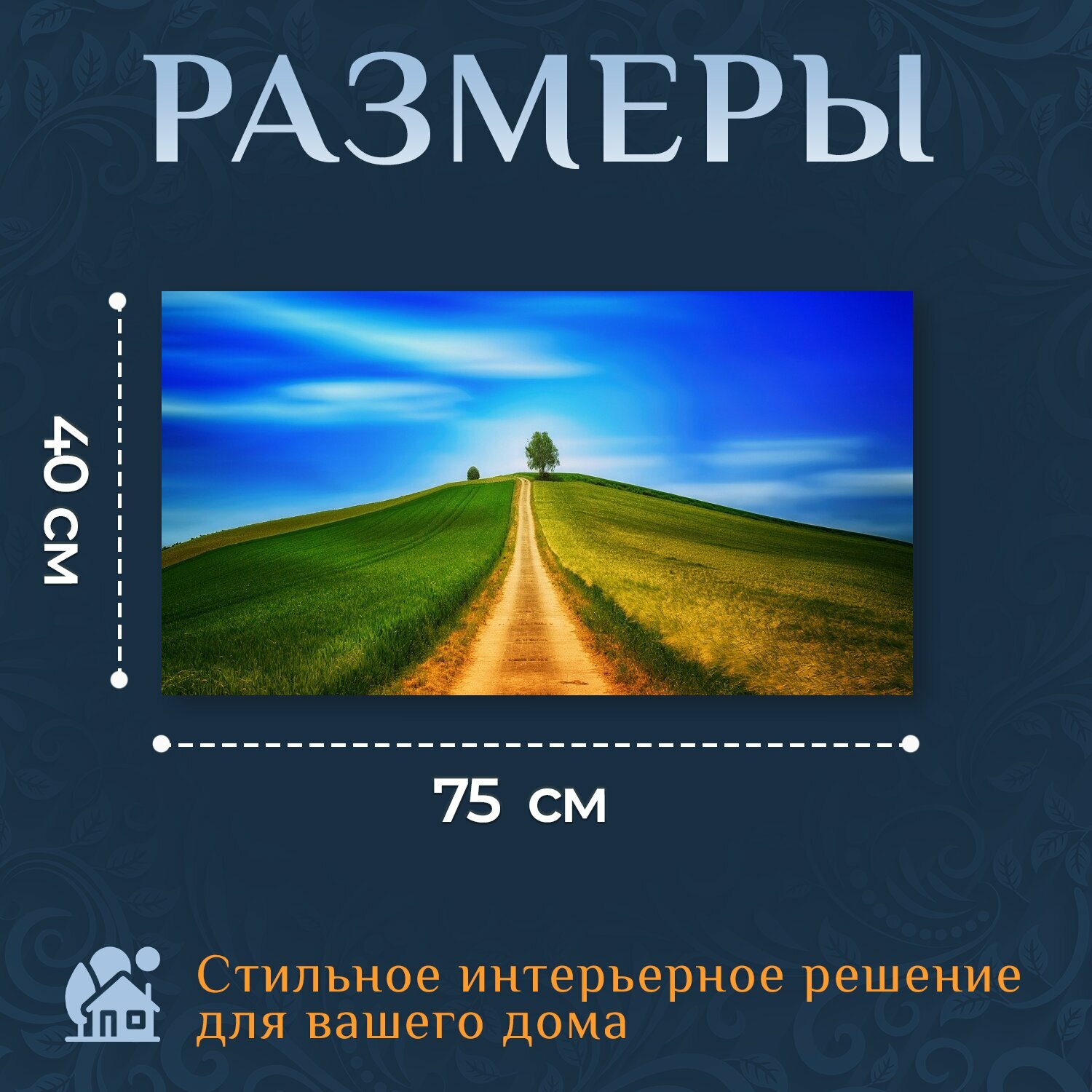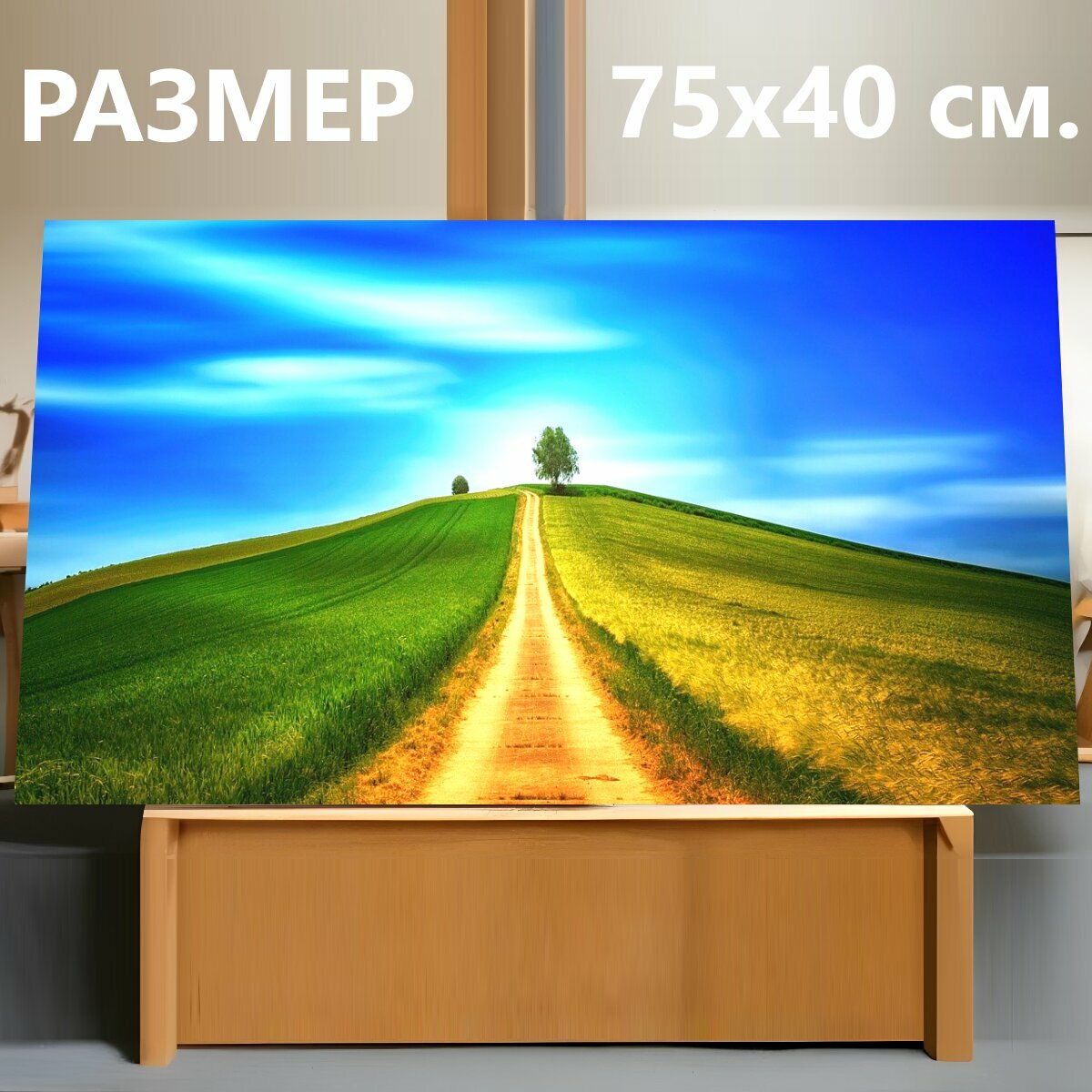 Картина на холсте "Далеко, холм, поля" на подрамнике 75х40 см. для интерьера интересное: