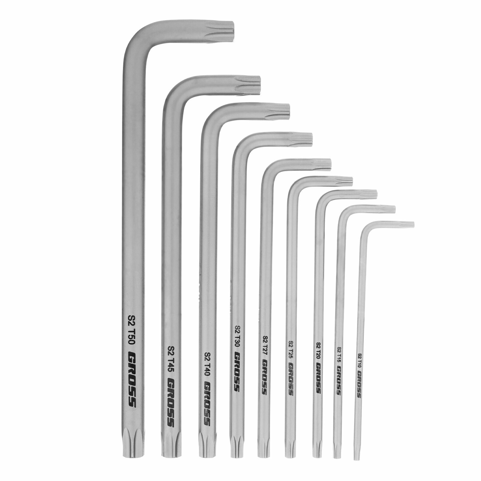 Купить Набор ключей имбусовых TORX-TT, 9 штук: T10-T50, удлиненные, S2, сатинированные Gross [16407]