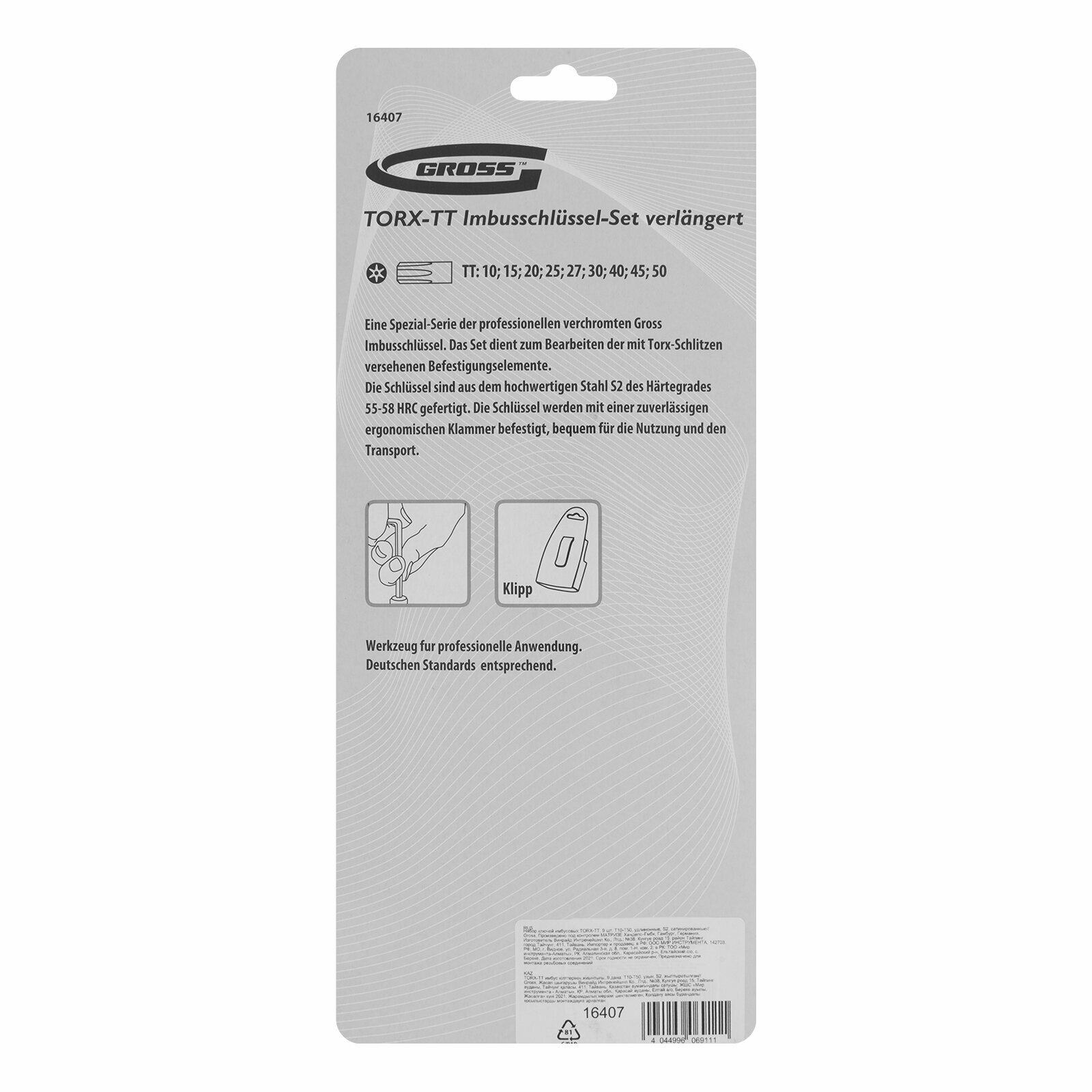 Набор ключей имбусовых TORX-TT, 9 шт: T10-T50, удлиненные, S2, сатинированные// Gross 16407 .