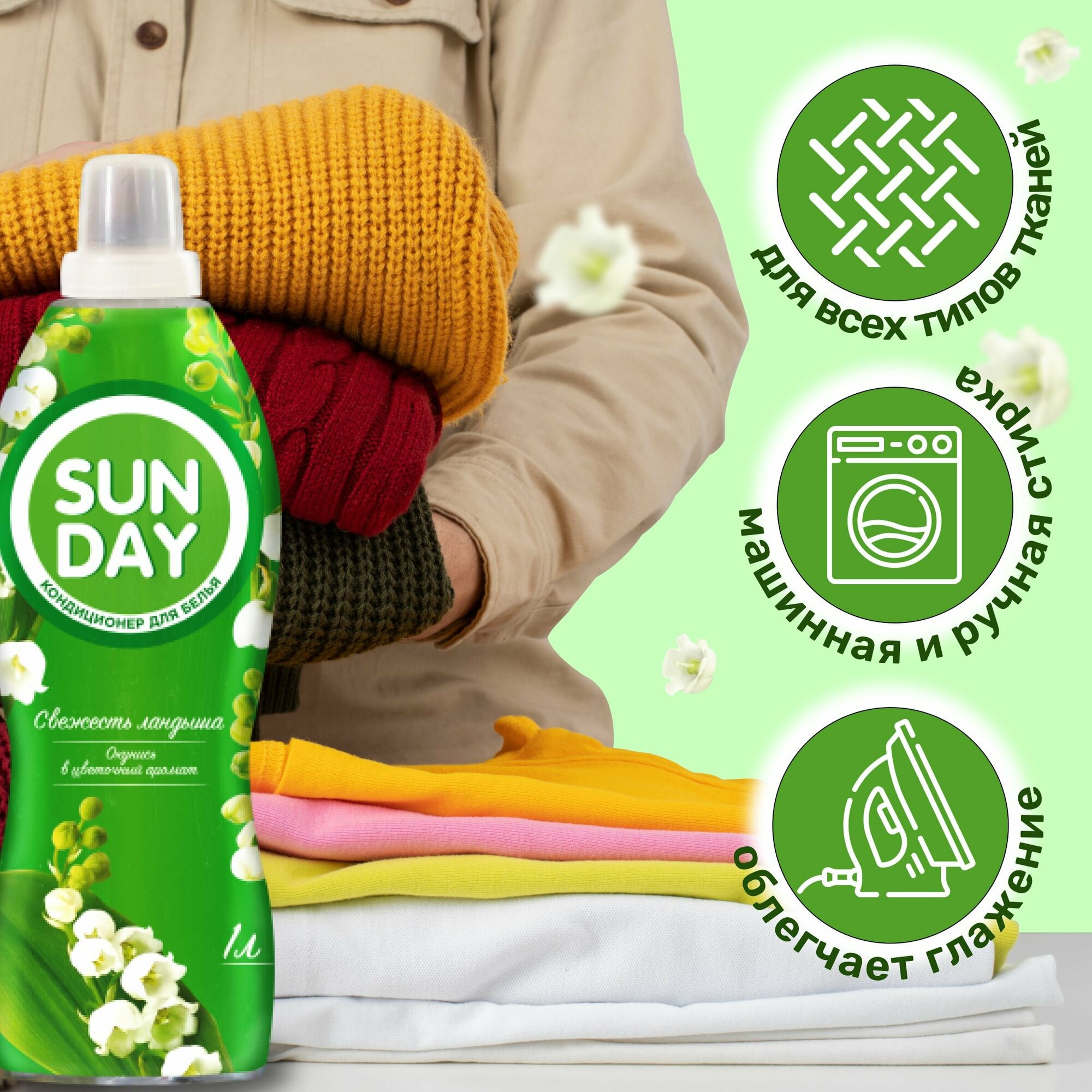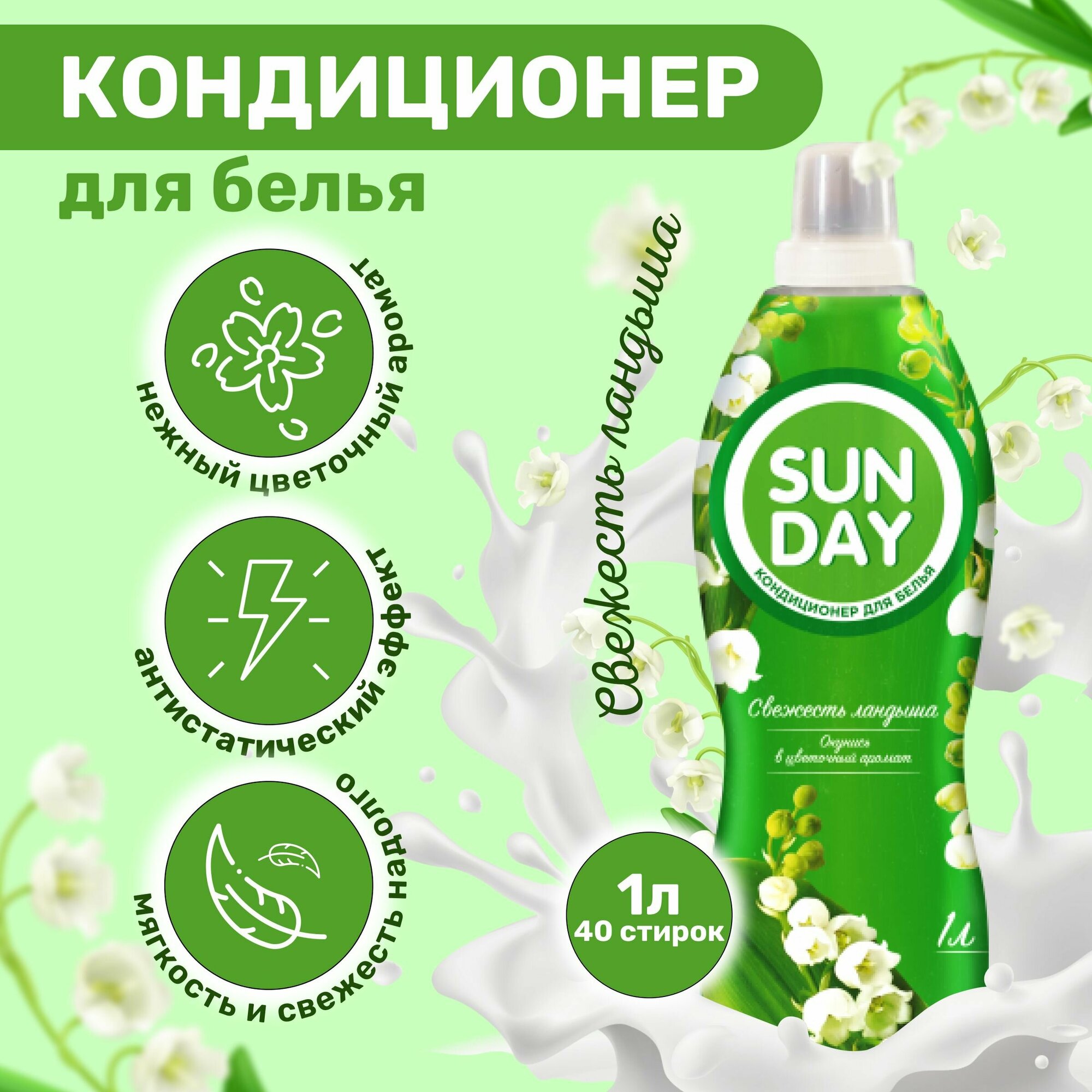 Sunday кондиционер для белья свежесть ландыша 1л