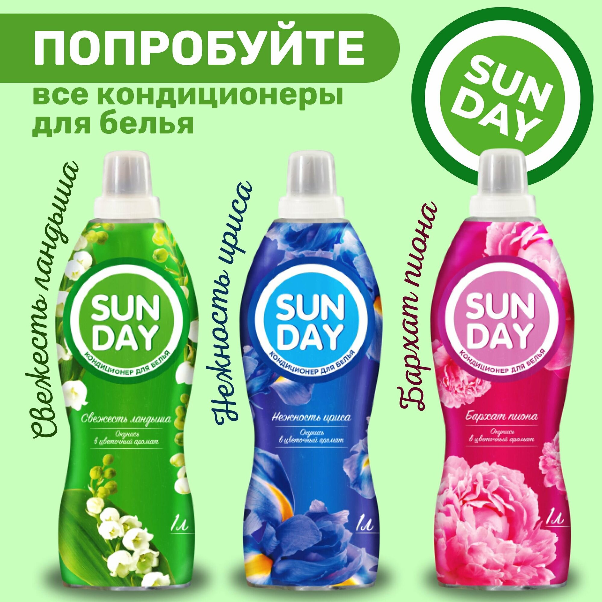 Sunday / Кондиционер для белья / бытовая химия для дома / хозяйственные товары / кондиционер для стирки (бархат пиона) 1л
