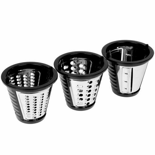 | Плюсы: | 4 сменные насадки-терки; мощность; лёгкость в сборке-разборке; удобно и легко мыть; приемлемый уровень шума; стильный внешний вид |