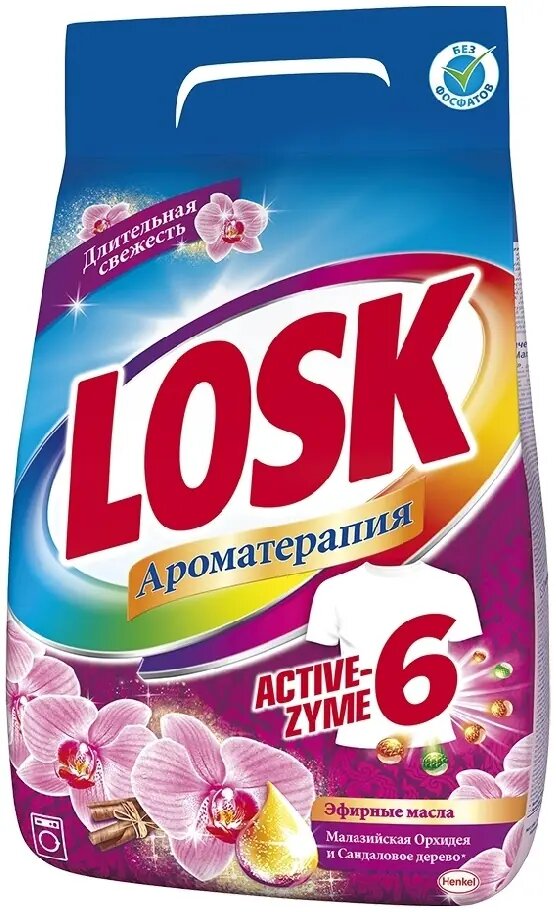 Стиральный порошок Losk Active-Zyme 6 Ароматерапия Орхидея 2.7 кг пластиковый пакет