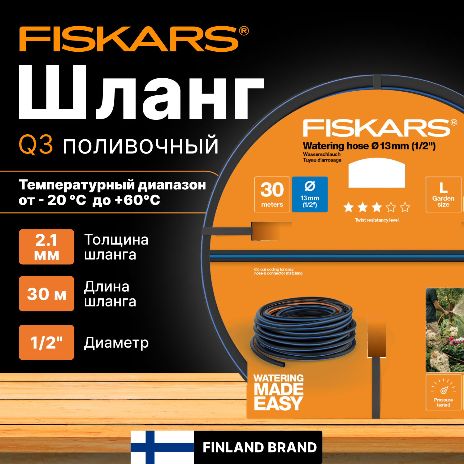 Шланг FISKARS Q3_13_30 ø, 13 мм (1/2") 30 м q3 [1027103]