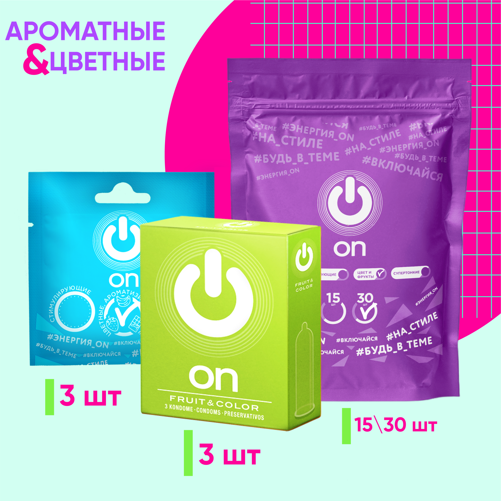 Купить Презервативы ON Fruit & Color №3 - цветные/ароматизированные