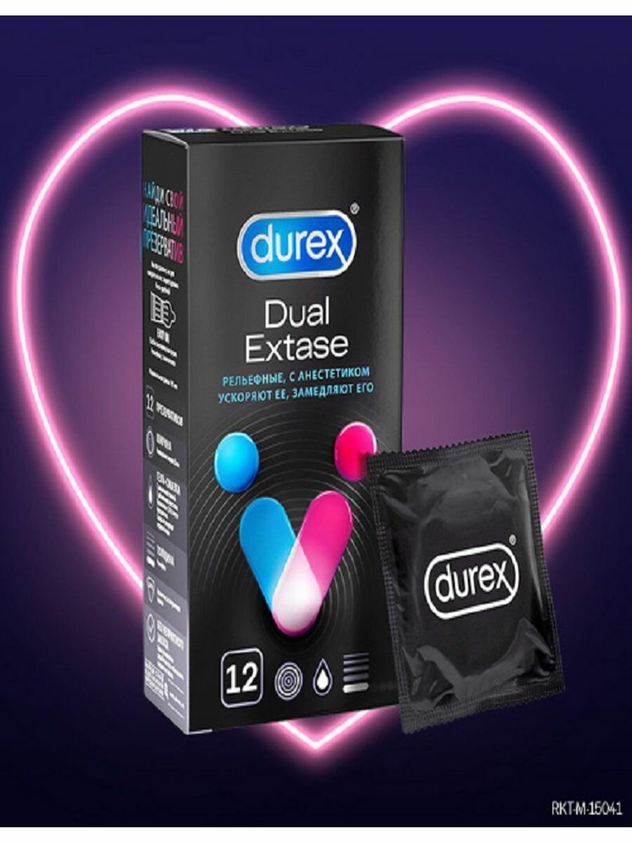 Презервативы Durex Dual Extase рельефные, с анестетиком, 12 шт