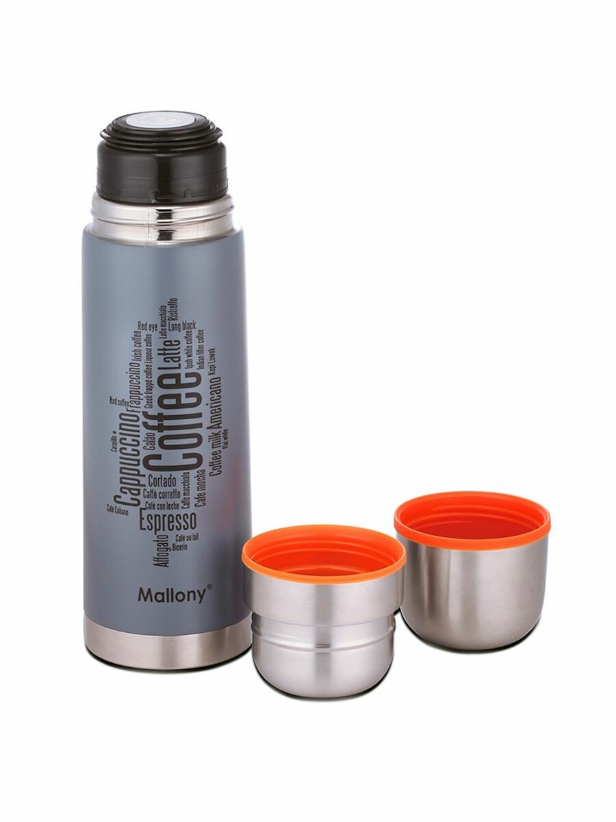 Купить Термос Mallony 0,75л FORTE узк.горло с кноп. 2 чашки, двойн.стенка, нерж.сталь, 3693 (арт. 676679)