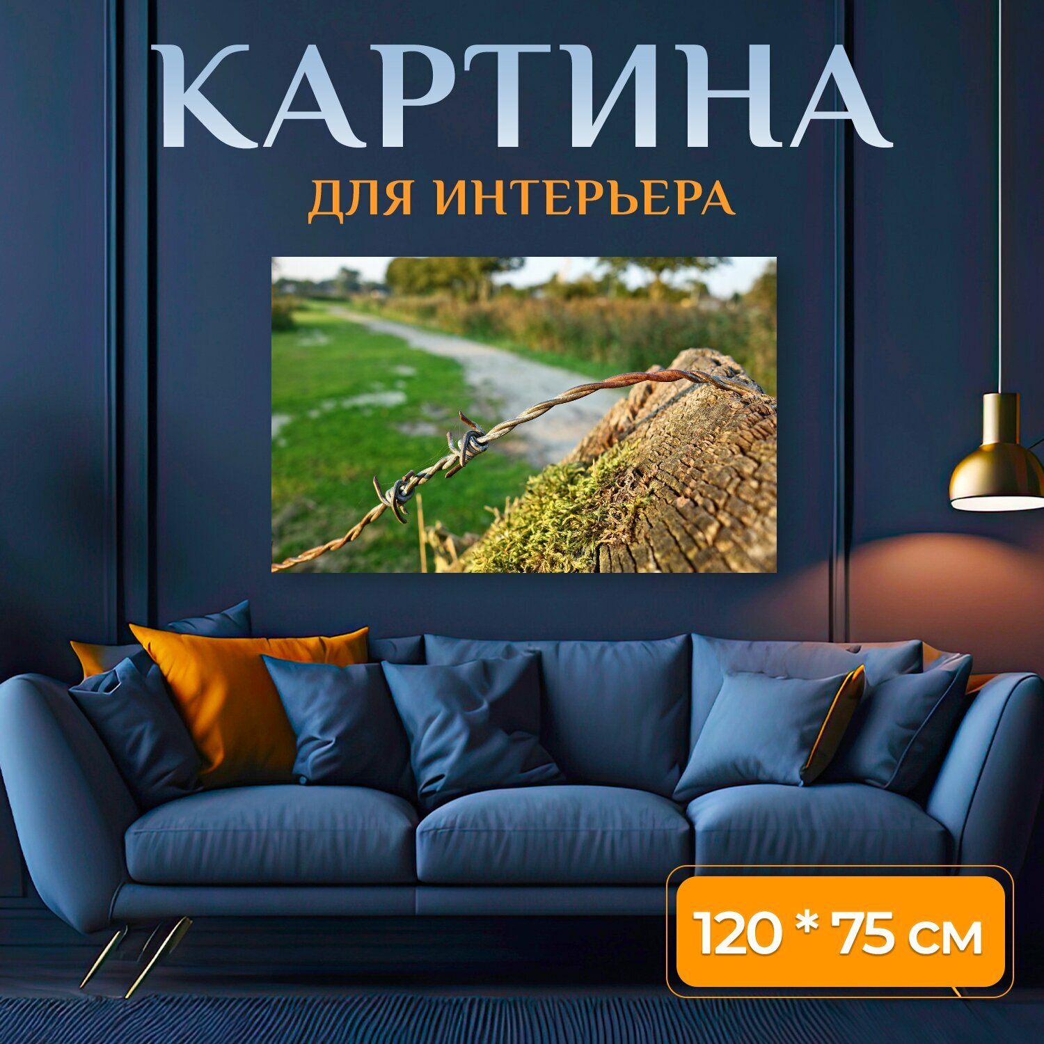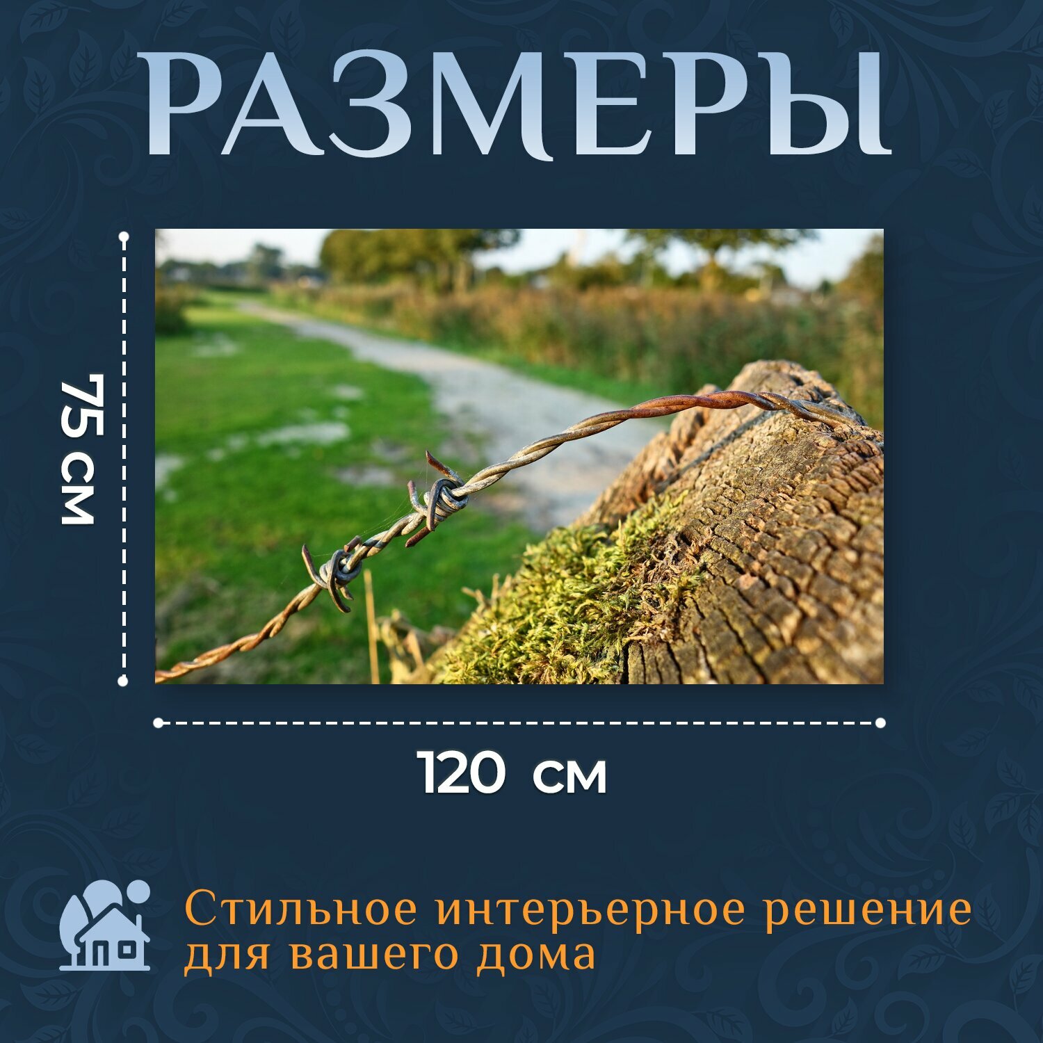 Купить Картина на холсте "Колючая проволока, провод, стали" на подрамнике 120х75 см. для интерьера