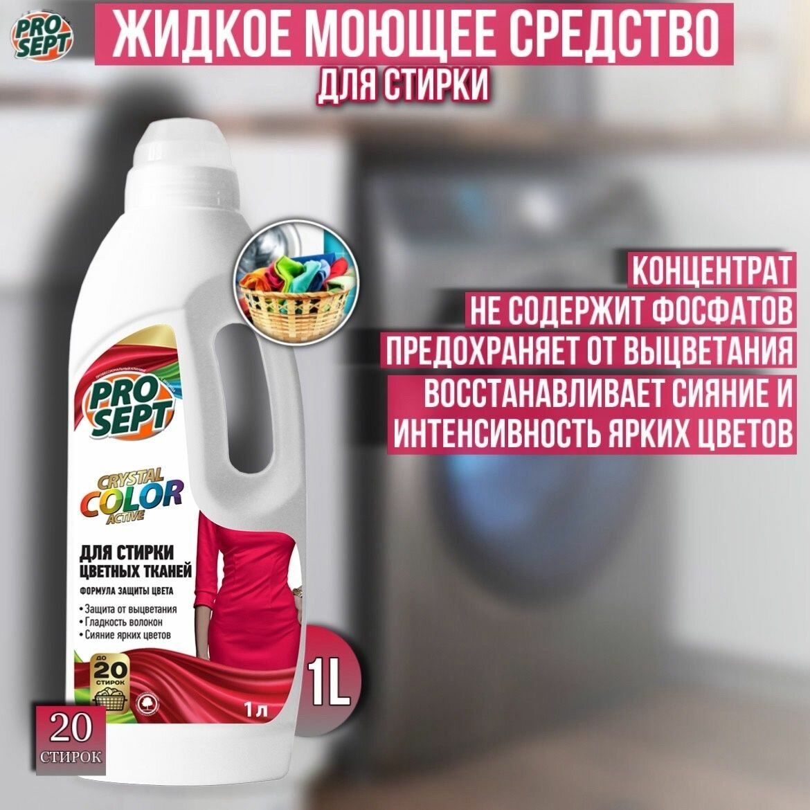 Prosept Crystal Жидкое моющее средство для стирки цветных тканей,1 л
