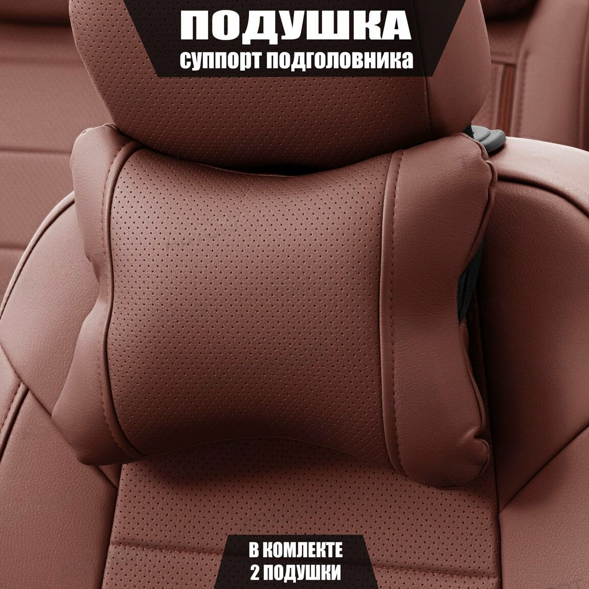 Подушки под шею (суппорт подголовника) для Митсубиси Паджеро (2014 - 2024) внедорожник 5 дверей / Mitsubishi Pajero, Экокожа, 2 подушки, Коричневый