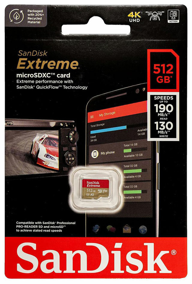 Ниже Вы можете прочитать отзывы на 512Gb - SanDisk Extreme Micro Secure Digital XC Class 10 UHS-I A2 C10 V30 U3 SDSQXAV-512G-GN6MN (Оригинальная!), ознакомится с подробными характеристиками, посмотреть интересные обзоры и фотографии на 512Gb - SanDisk Extreme Micro Secure Digital XC Class 10 UHS-I A2 C10 V30 U3 SDSQXAV-512G-GN6MN (Оригинальная!).