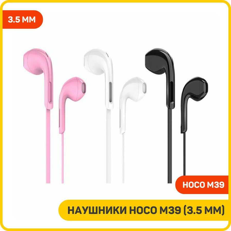 Наушники внутриканальные HOCO M39, Jack 3.5мм, 1.2 м, цвет: розовый