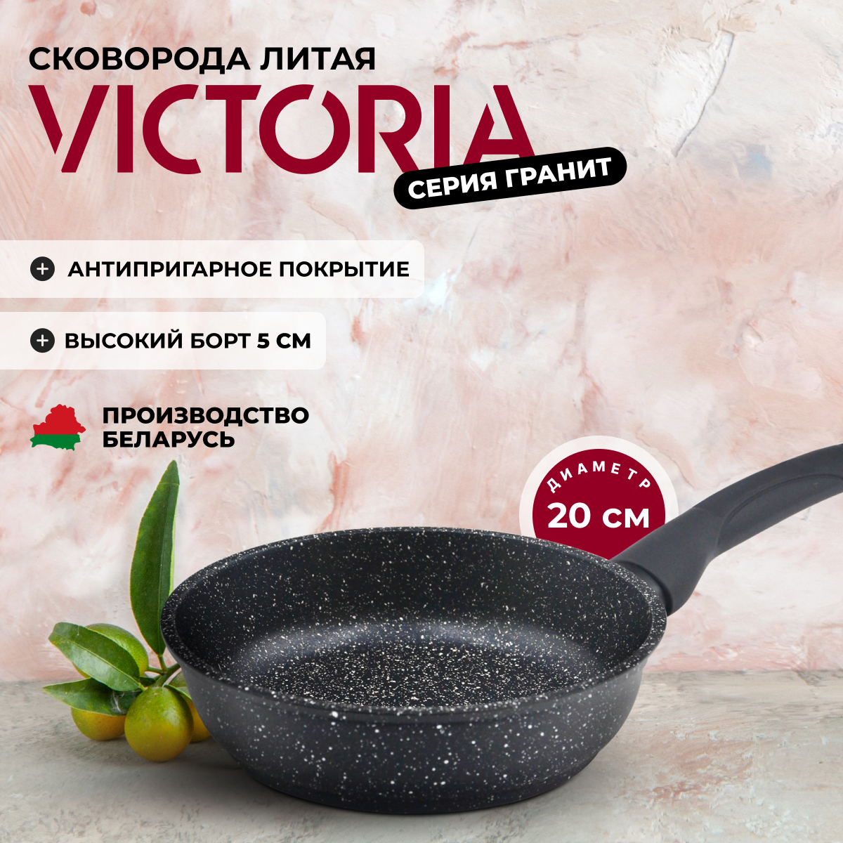 Сковорода VICTORIA Гранит G00, диаметр 20 см, 40х40 см