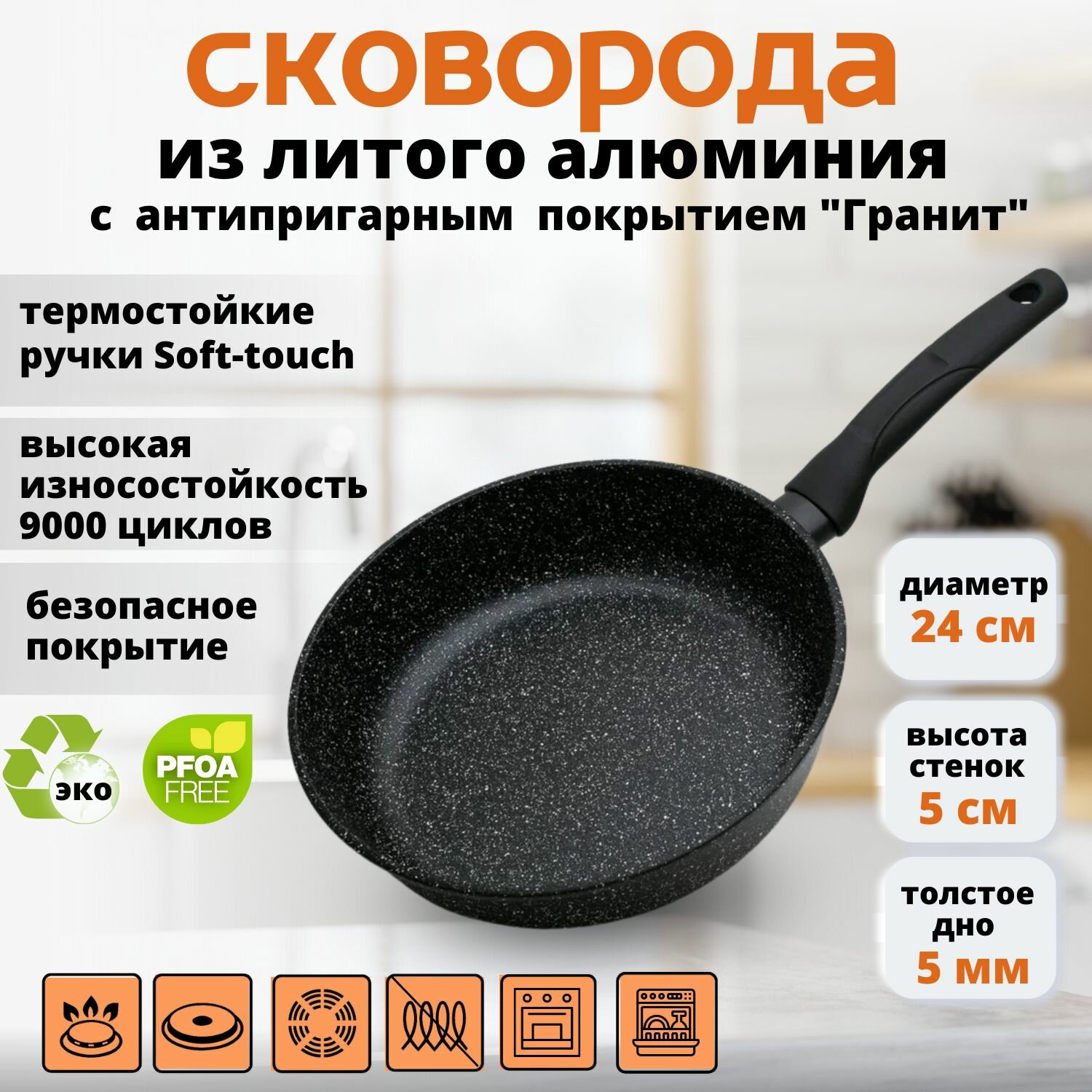 Сковорода VICTORIA "Гранит", 24 см, черная