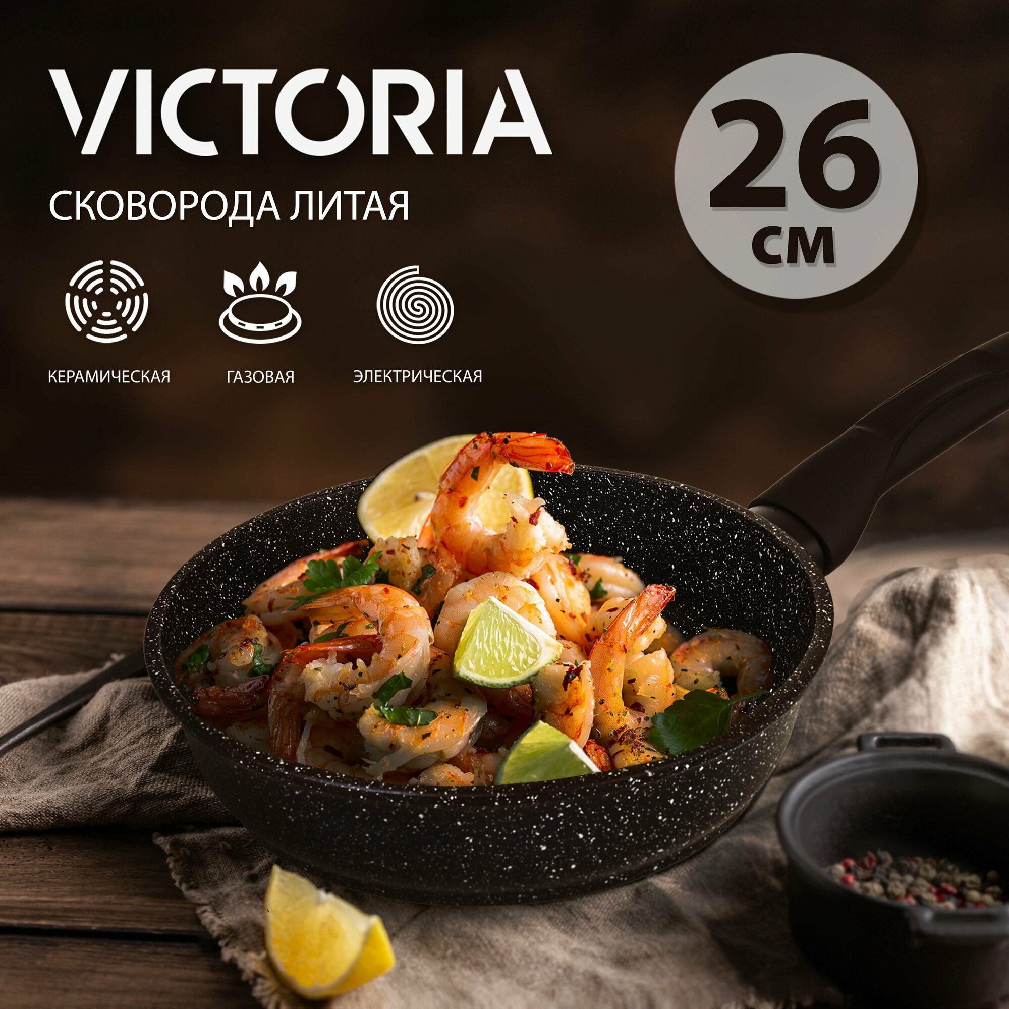 Сковорода VICTORIА G0026 26 см, черный гранит