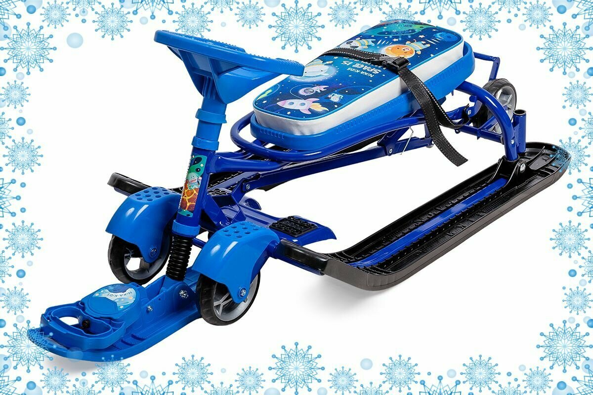 Снегокат с колёсами «Тимка спорт 6 Космический», ТС6-М/К, с родительской ручкой, со спинкой и ремнём безопасности