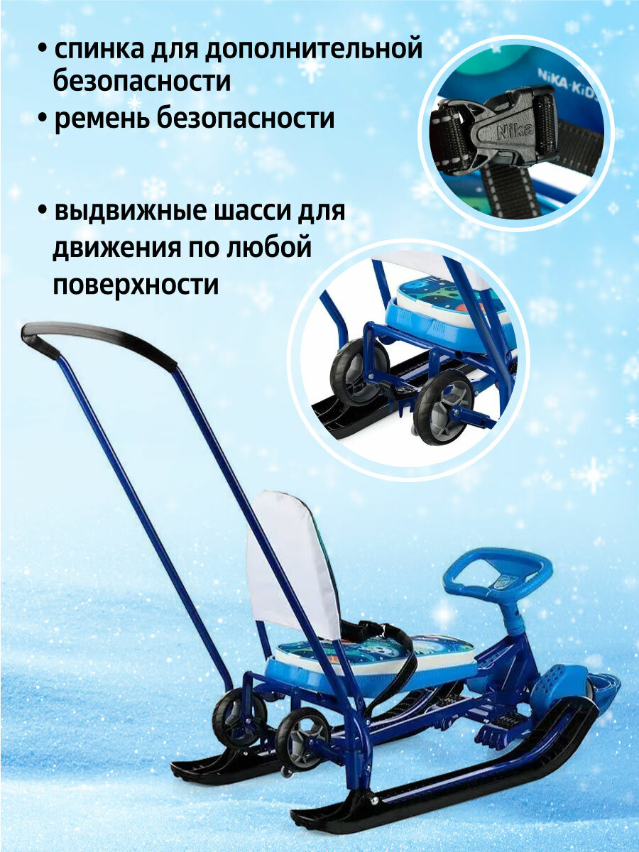 Снегокат для детей с выдвижными колёсами, родительской ручкой, Nika, ТС6-М/К